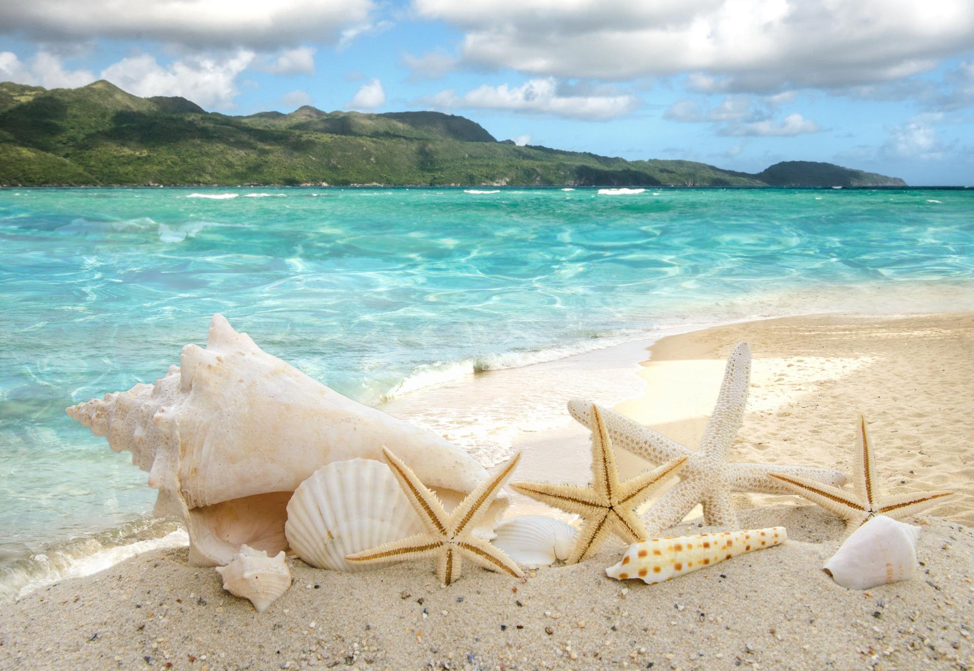 пляж с ракушками