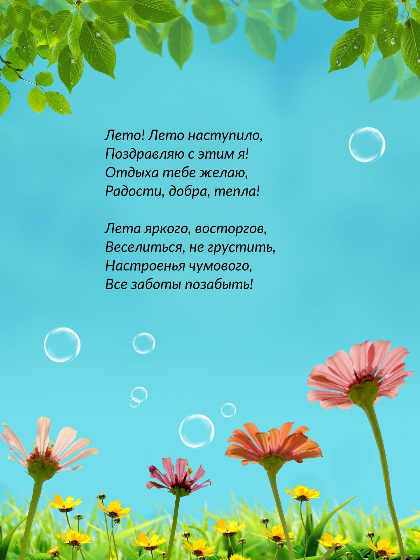 красивые детские стихи о лете