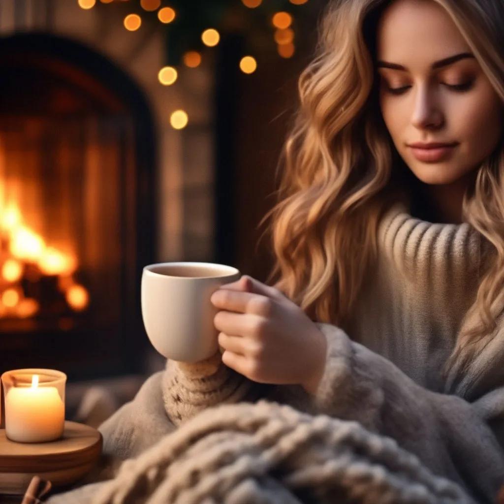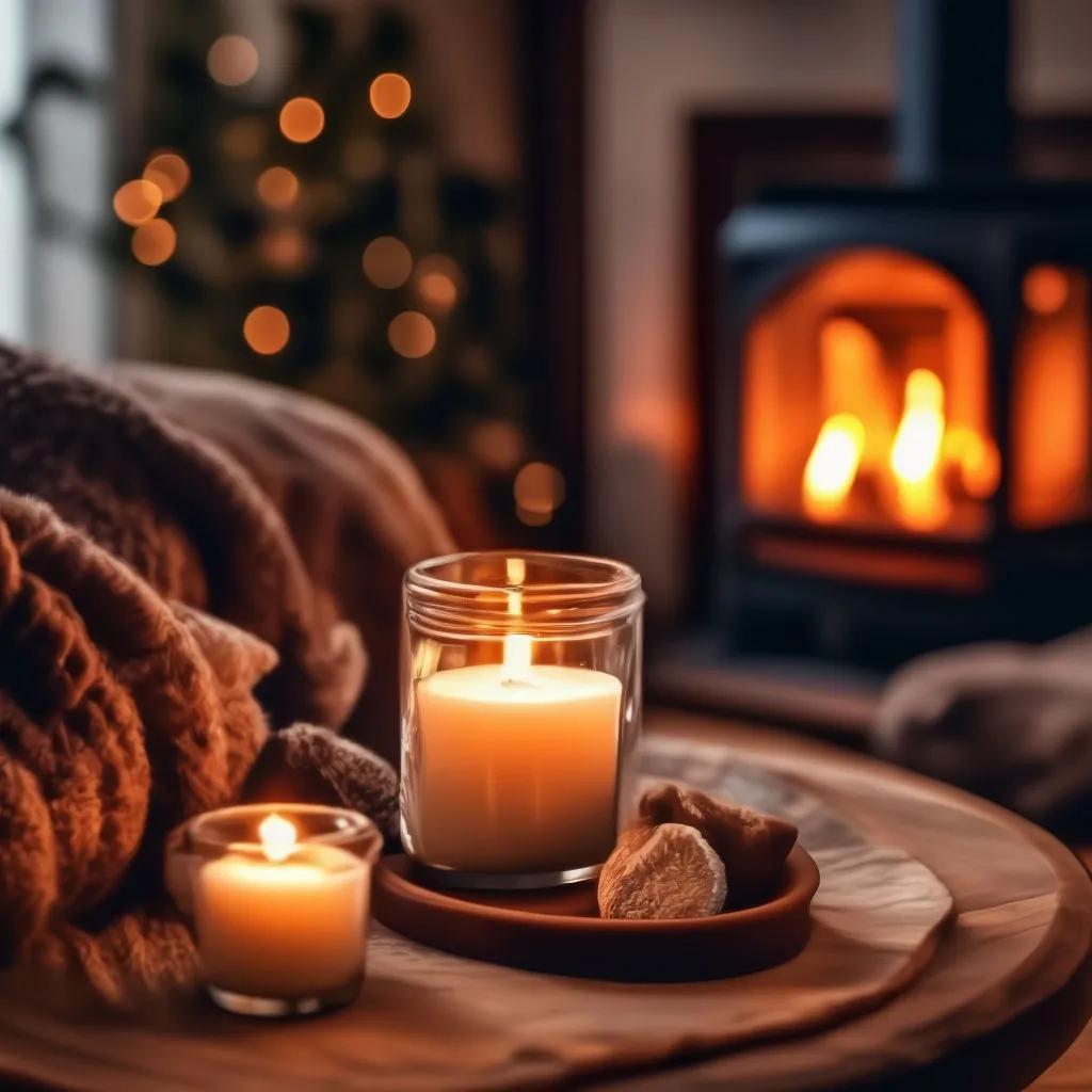 камин плед вино