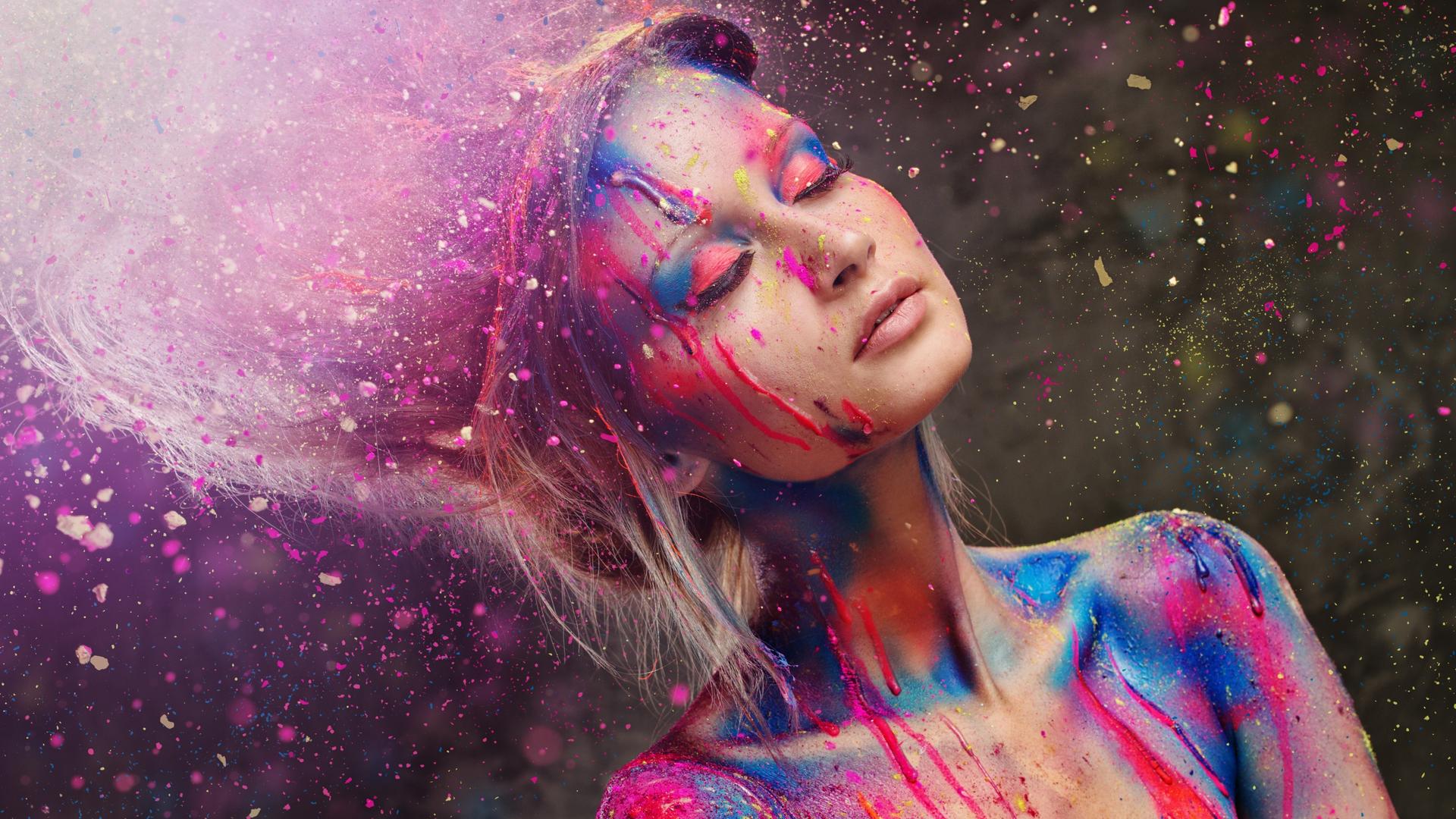 девушки с брызгами краски