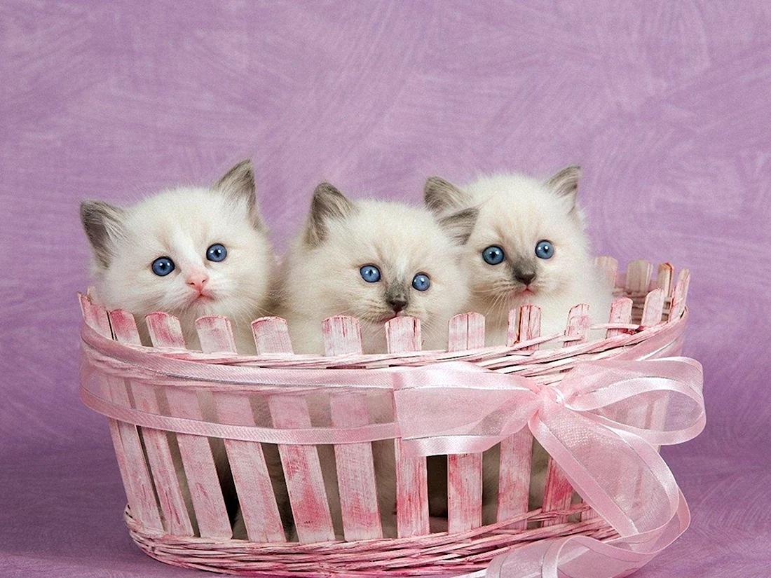 котята на розовом фоне