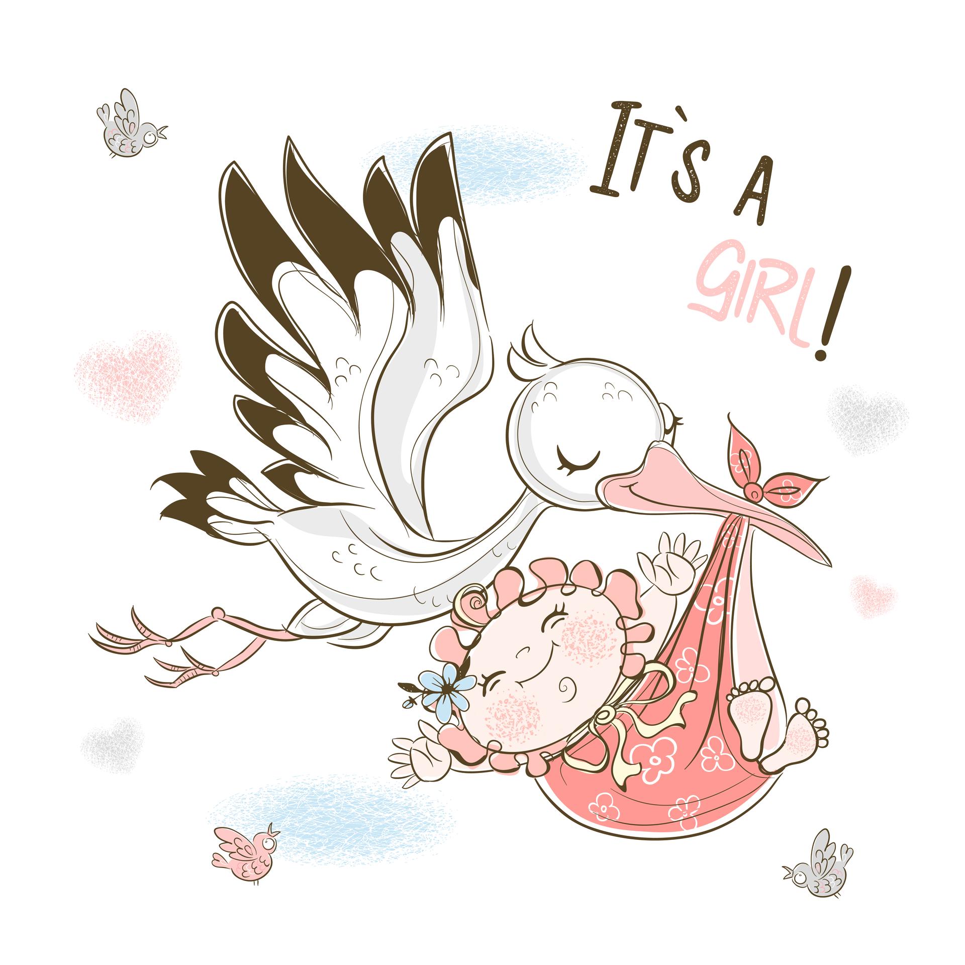 аист несет девочку