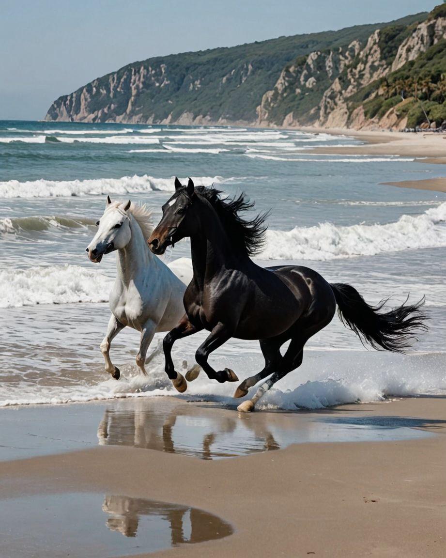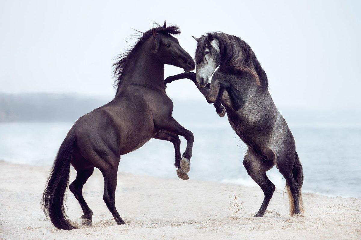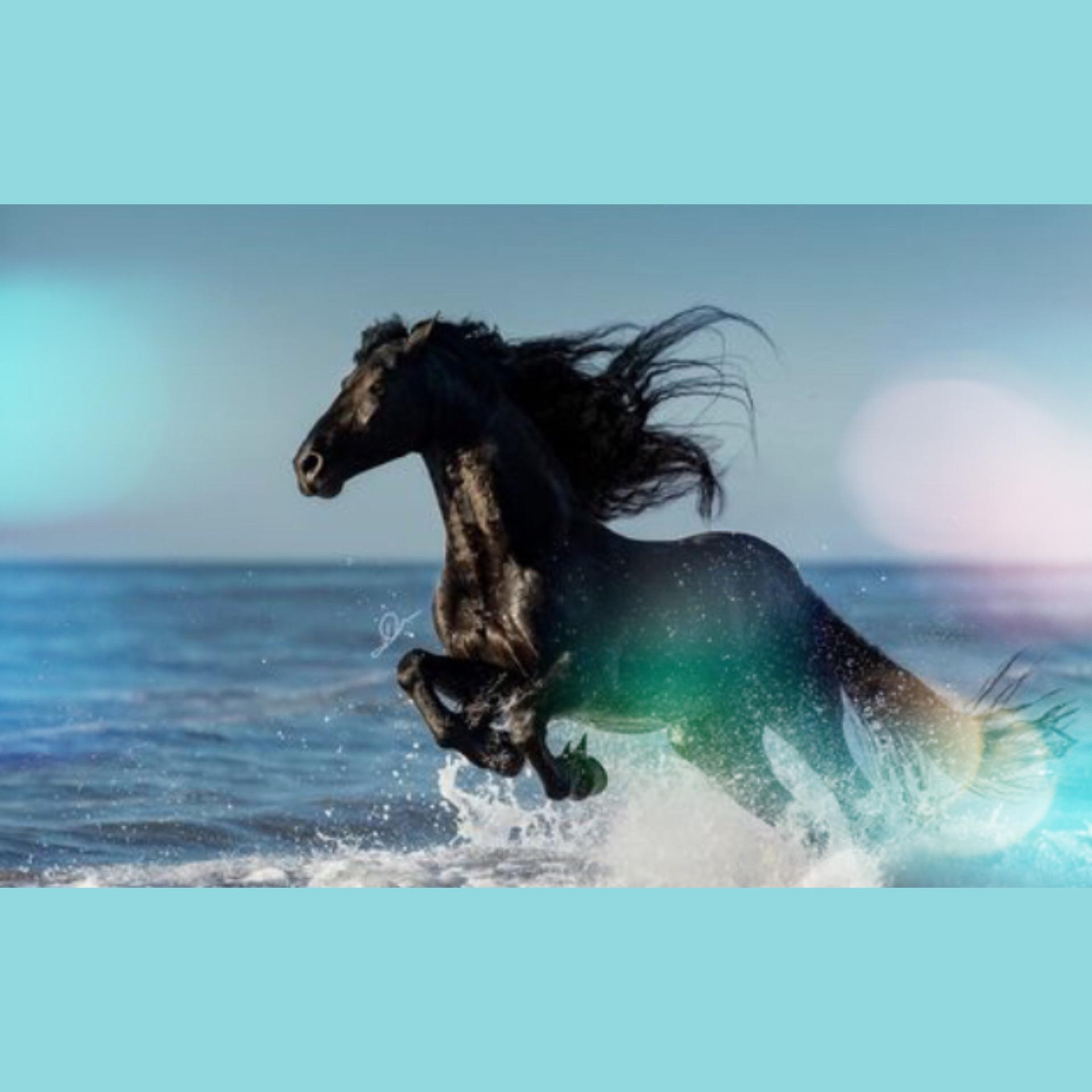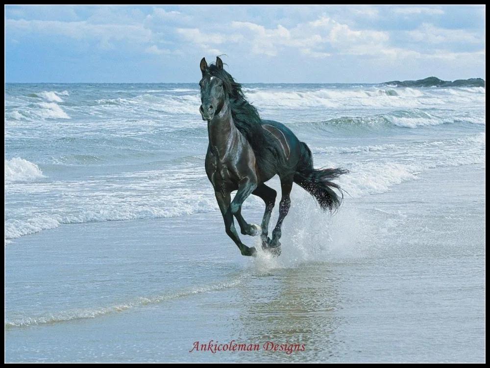 лошади бегут по морю