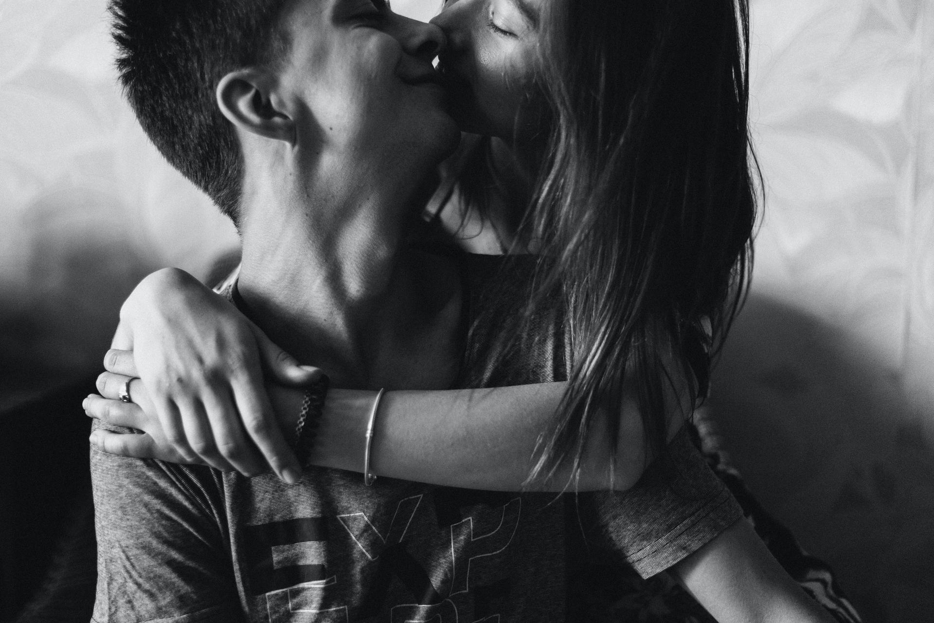 девушка целует парня в губы