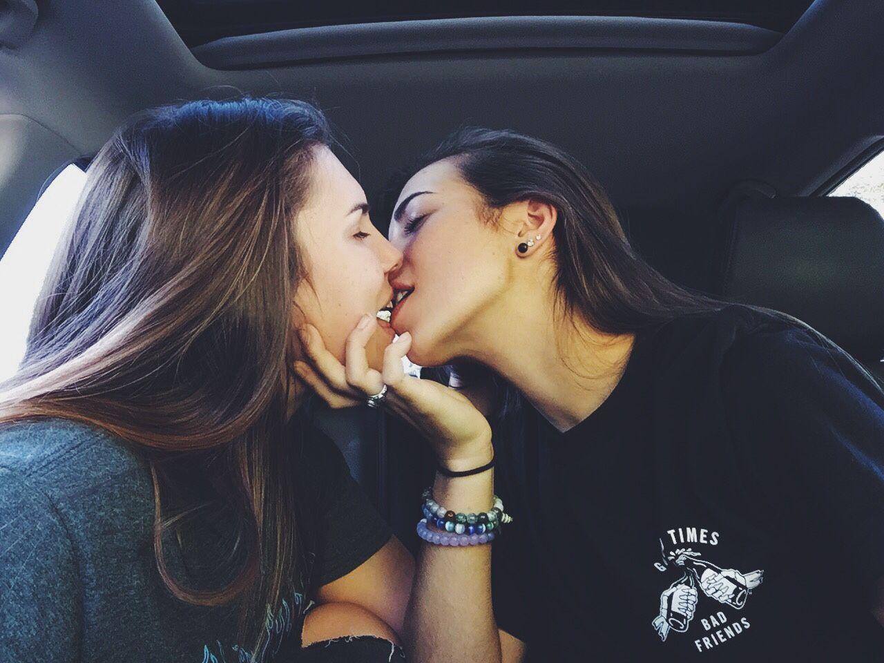 девушки поцелуй