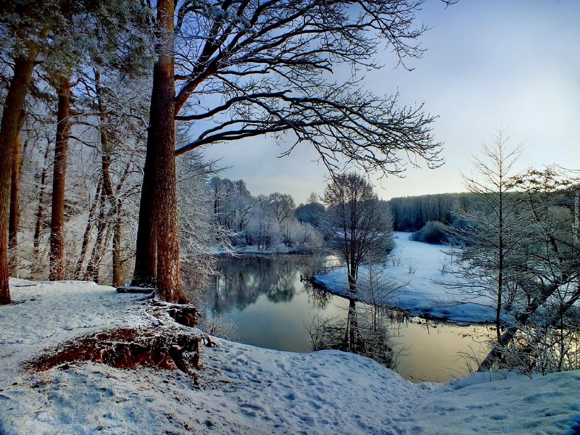зимний лес с рекой