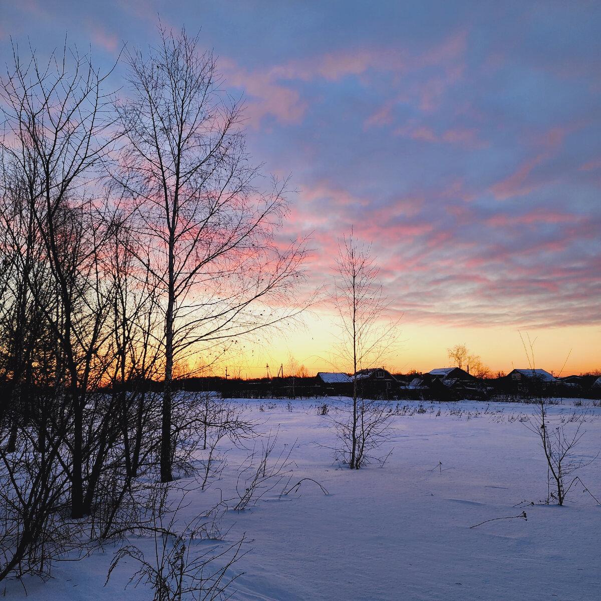 зимний рассвет в деревне