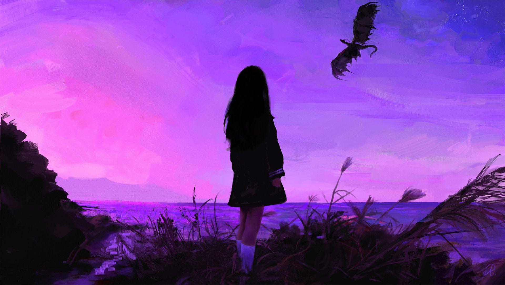 малиновый закат девушка