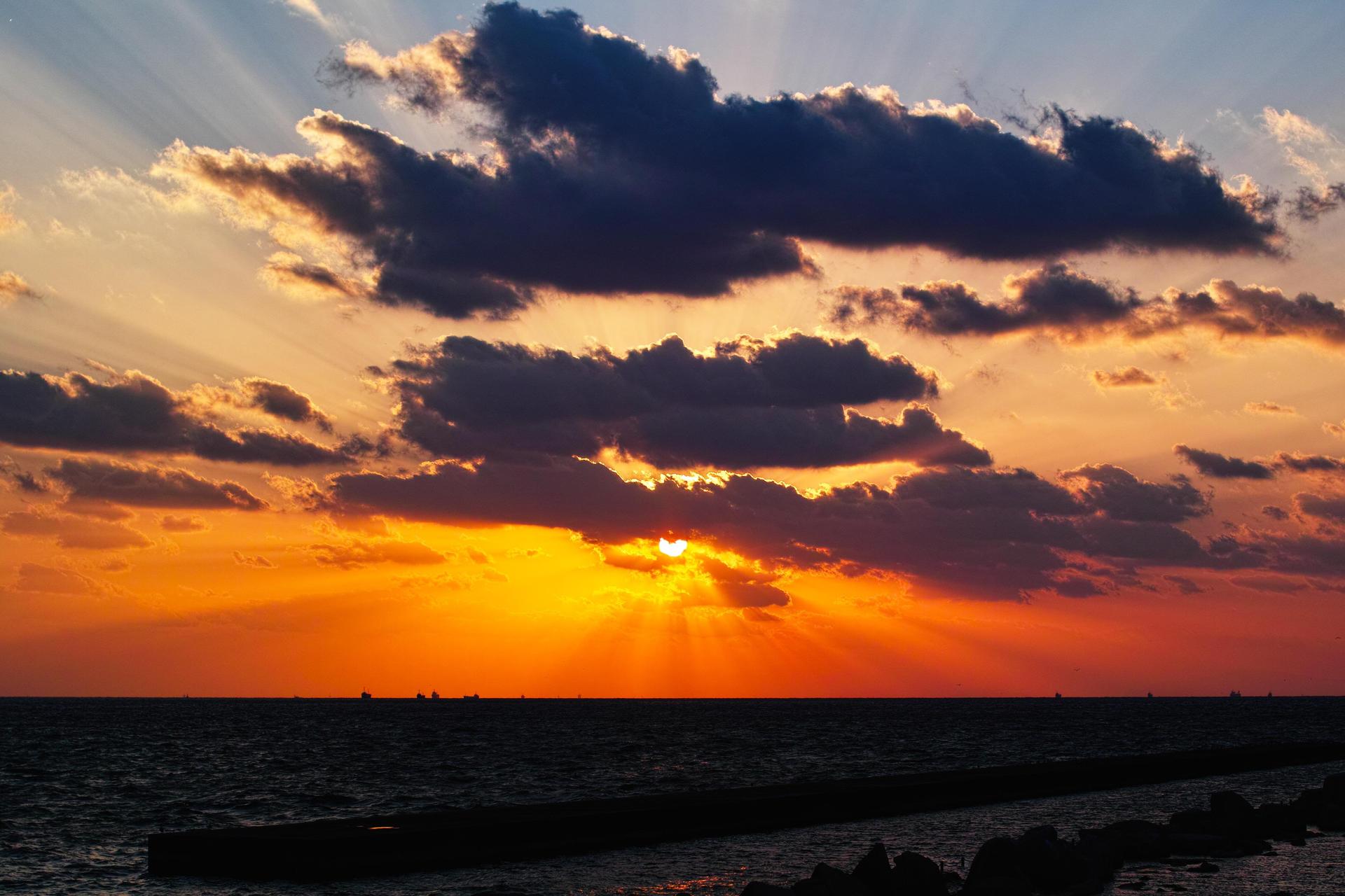 закат над морем