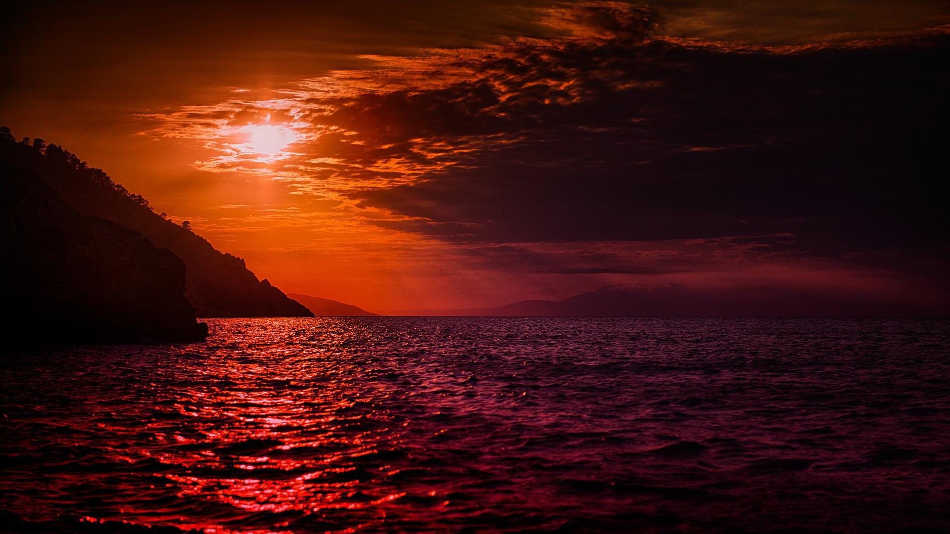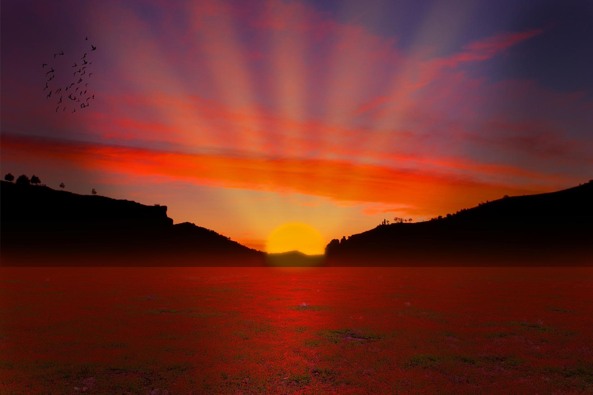 красное солнце на закате