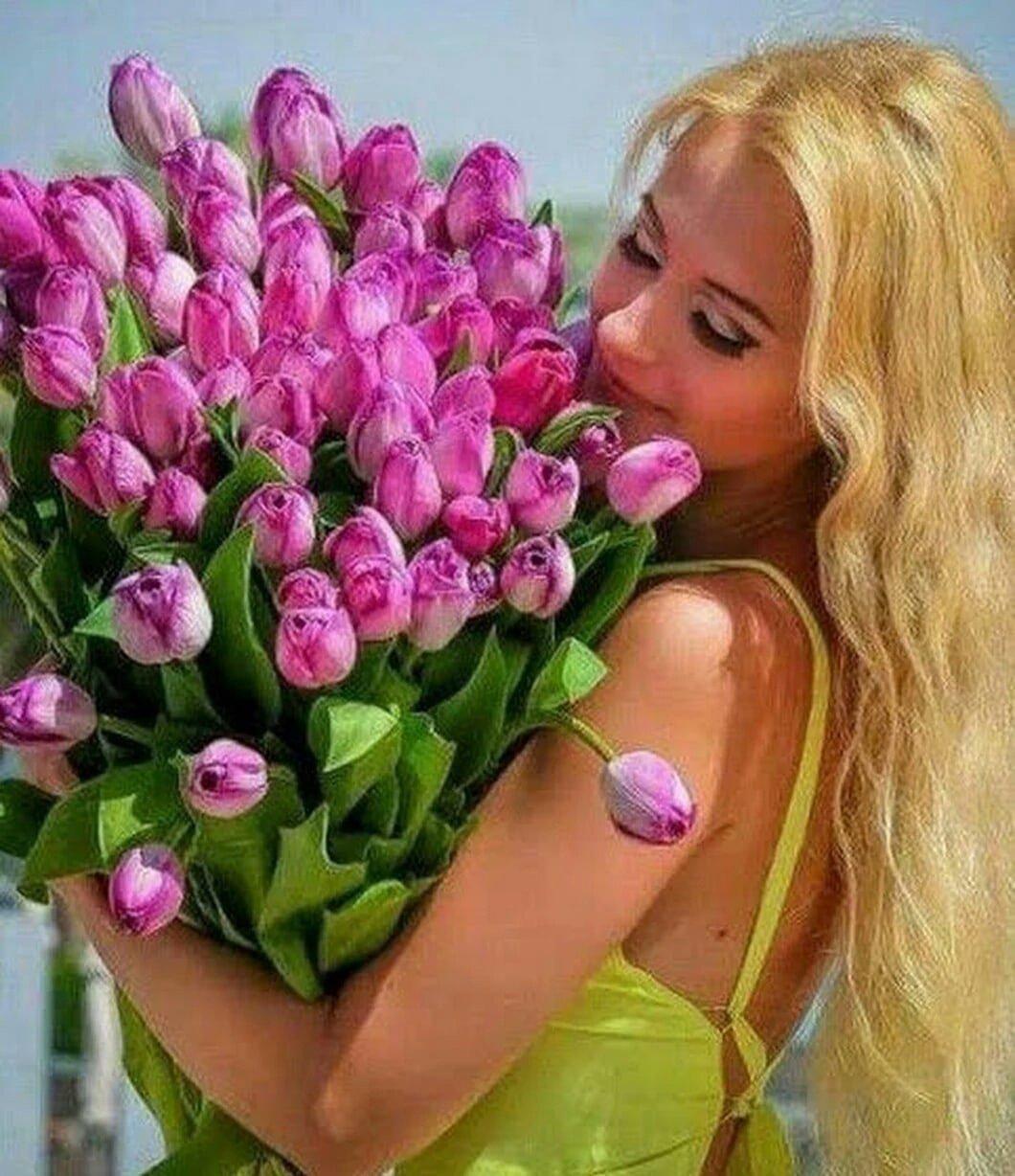 девушка с букетом тюльпанов