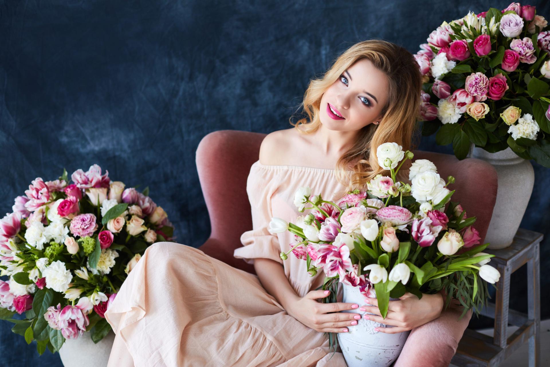 девушка с цветам