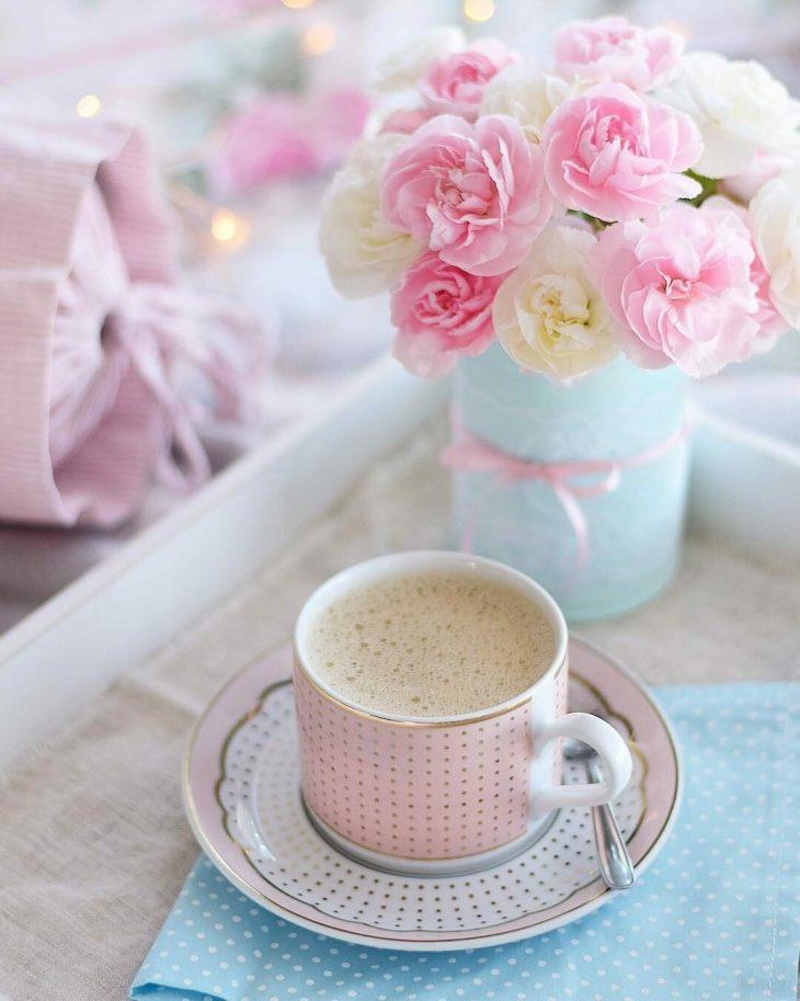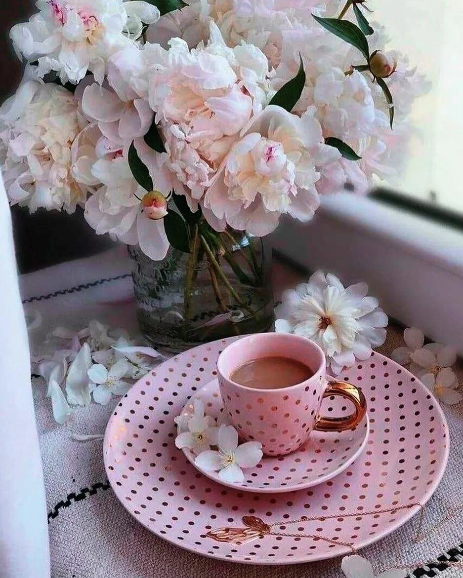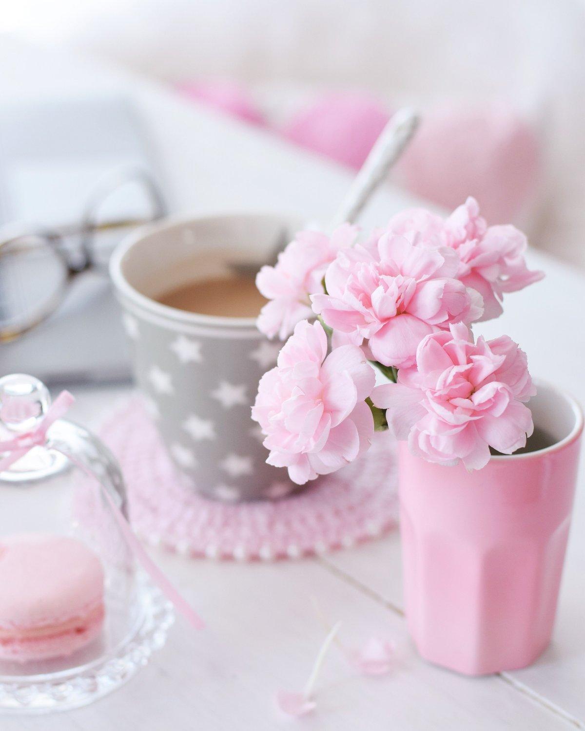 чашка кофе в розовых тонах