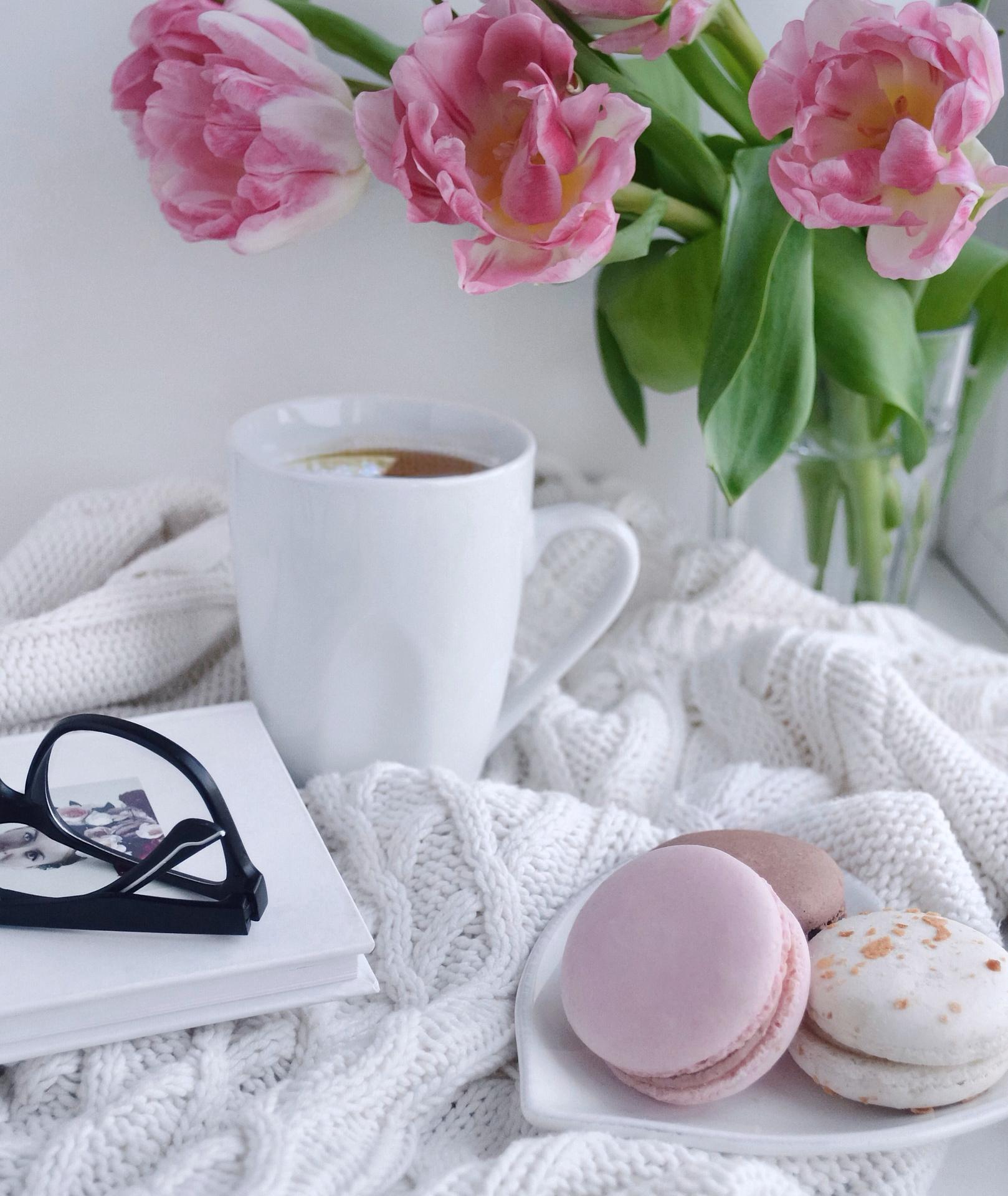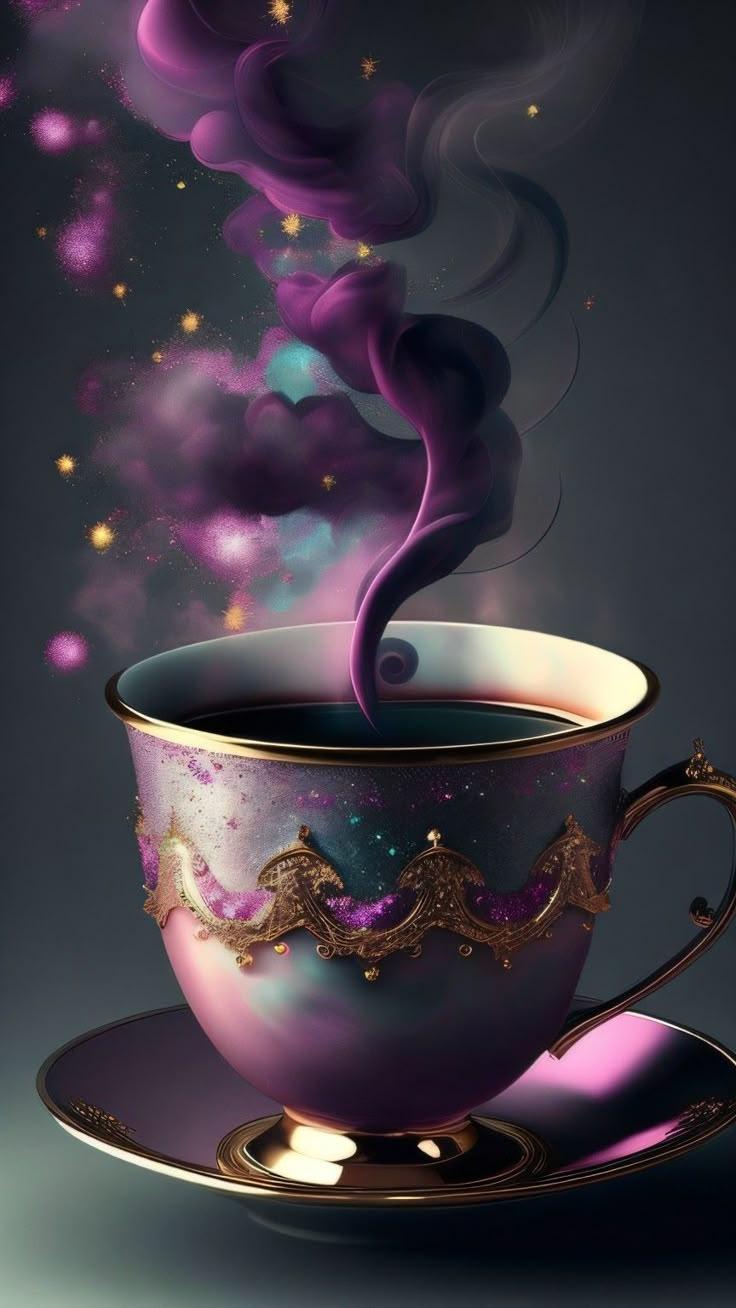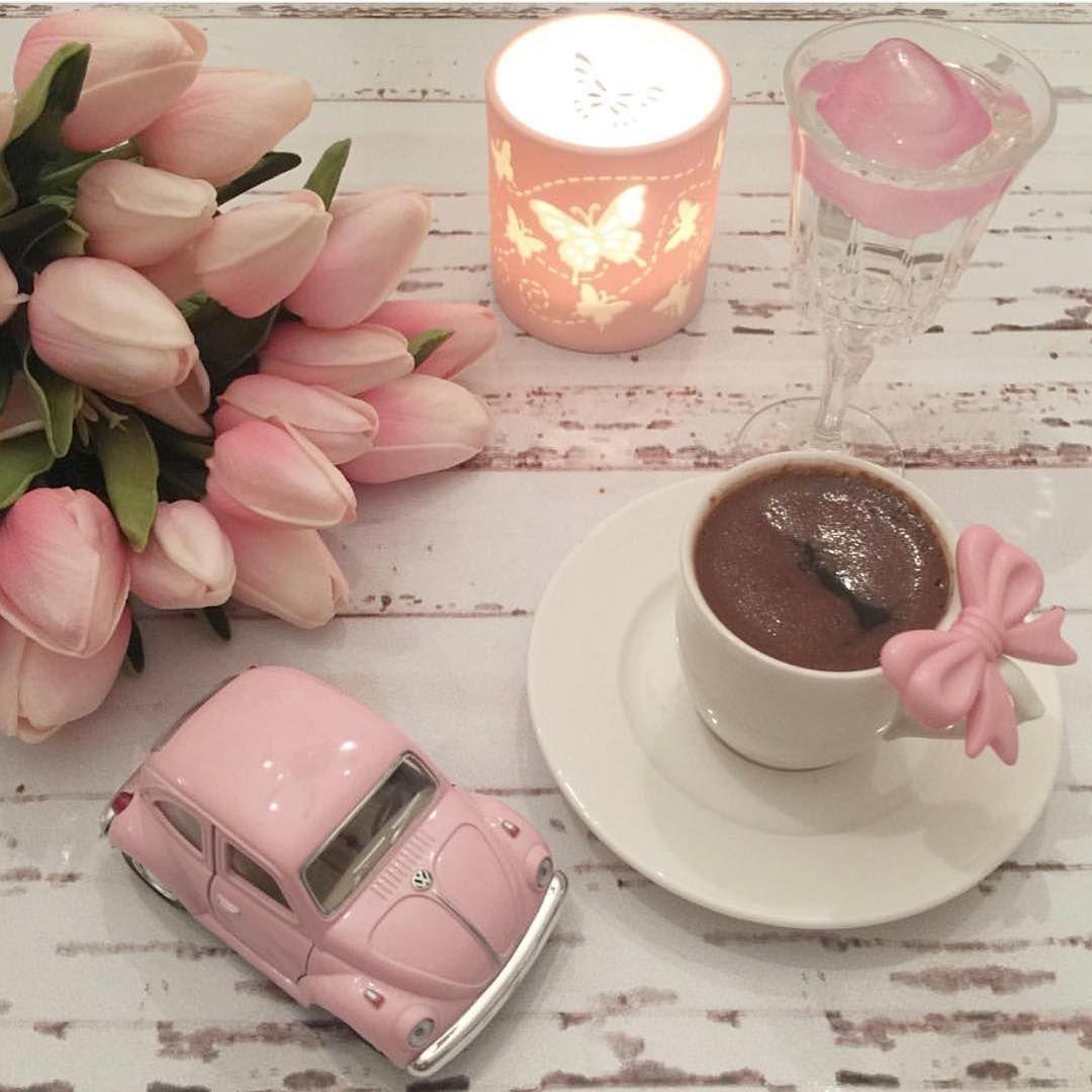 чашка кофе в розовых тонах