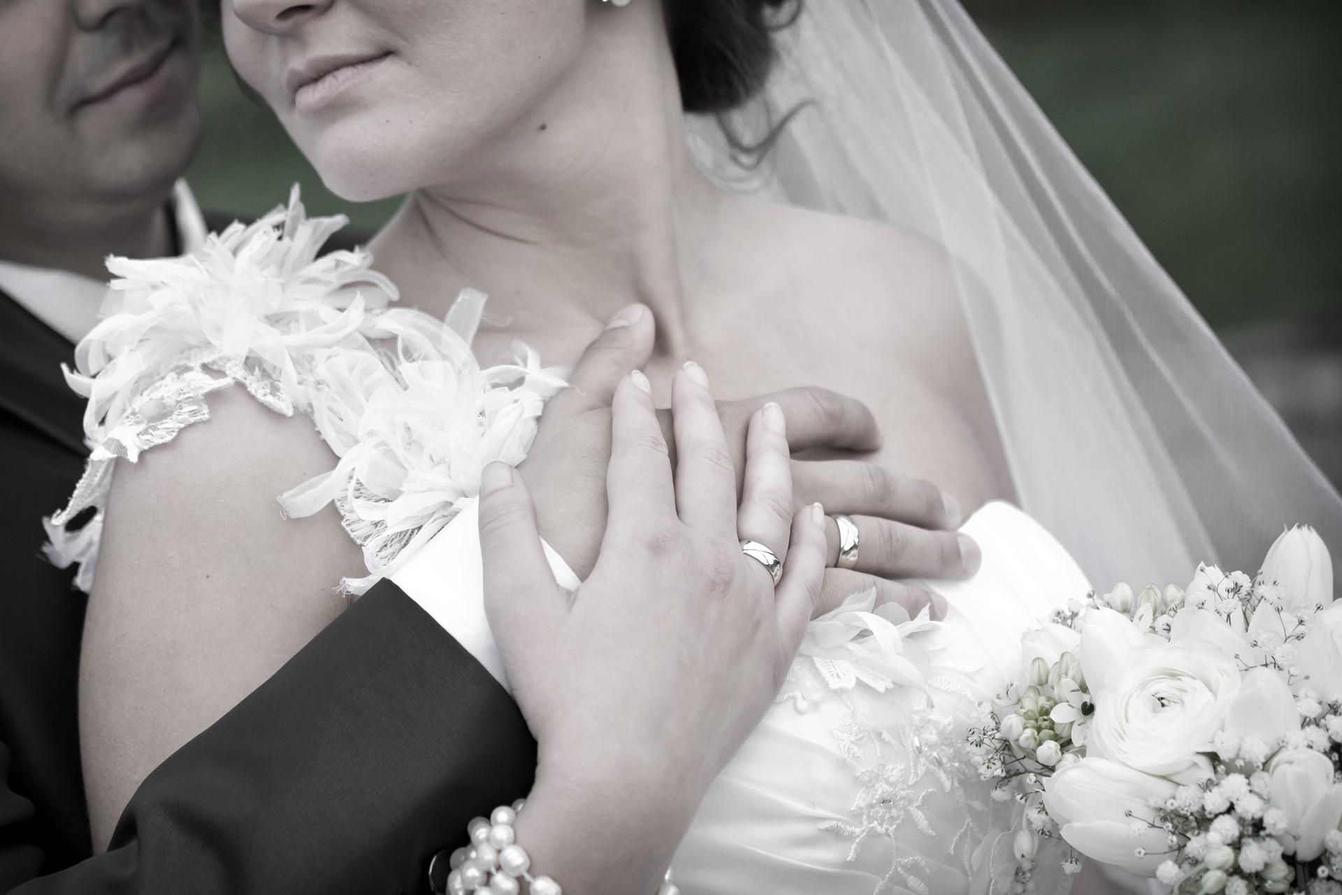 руки молодоженов с обручальными кольцами