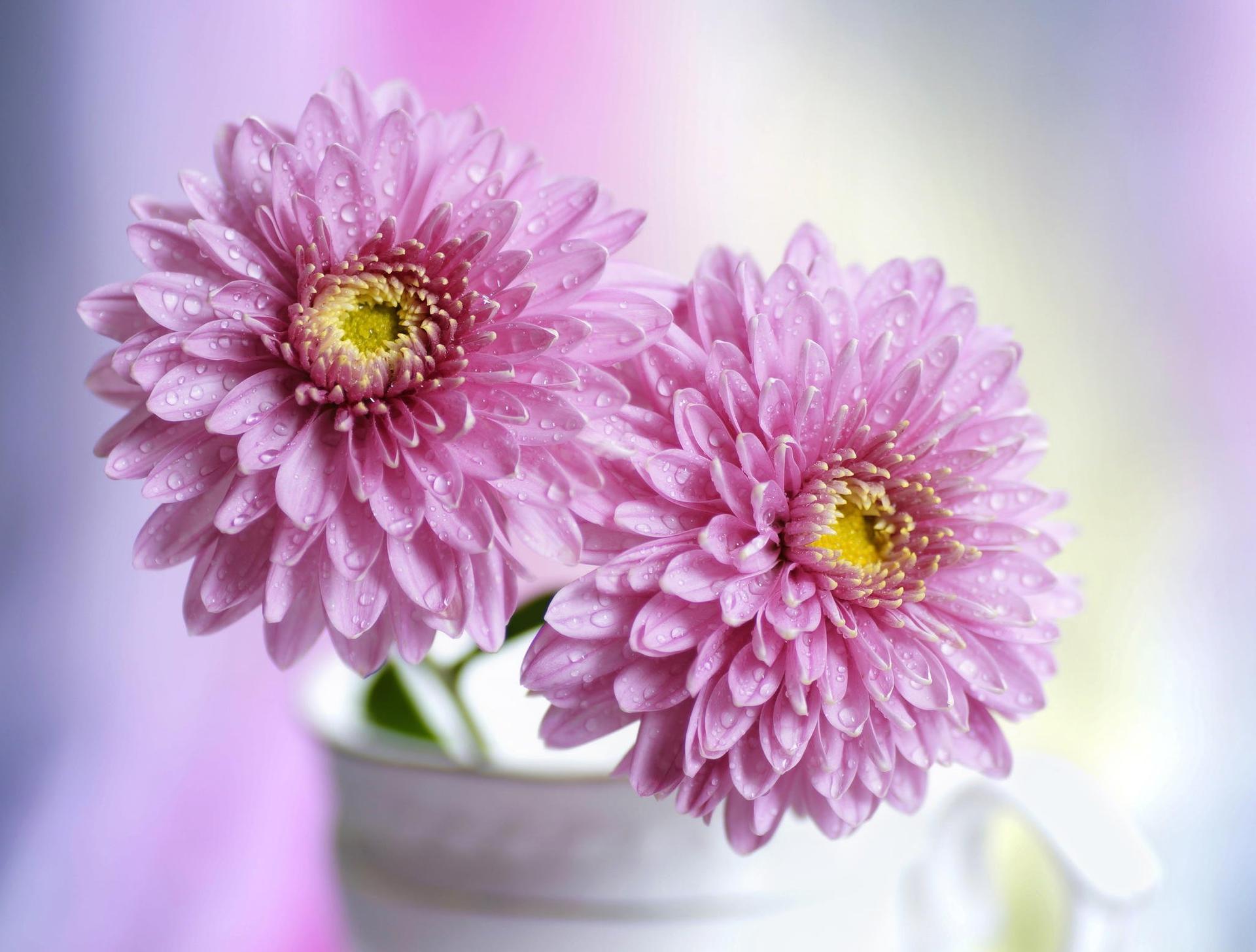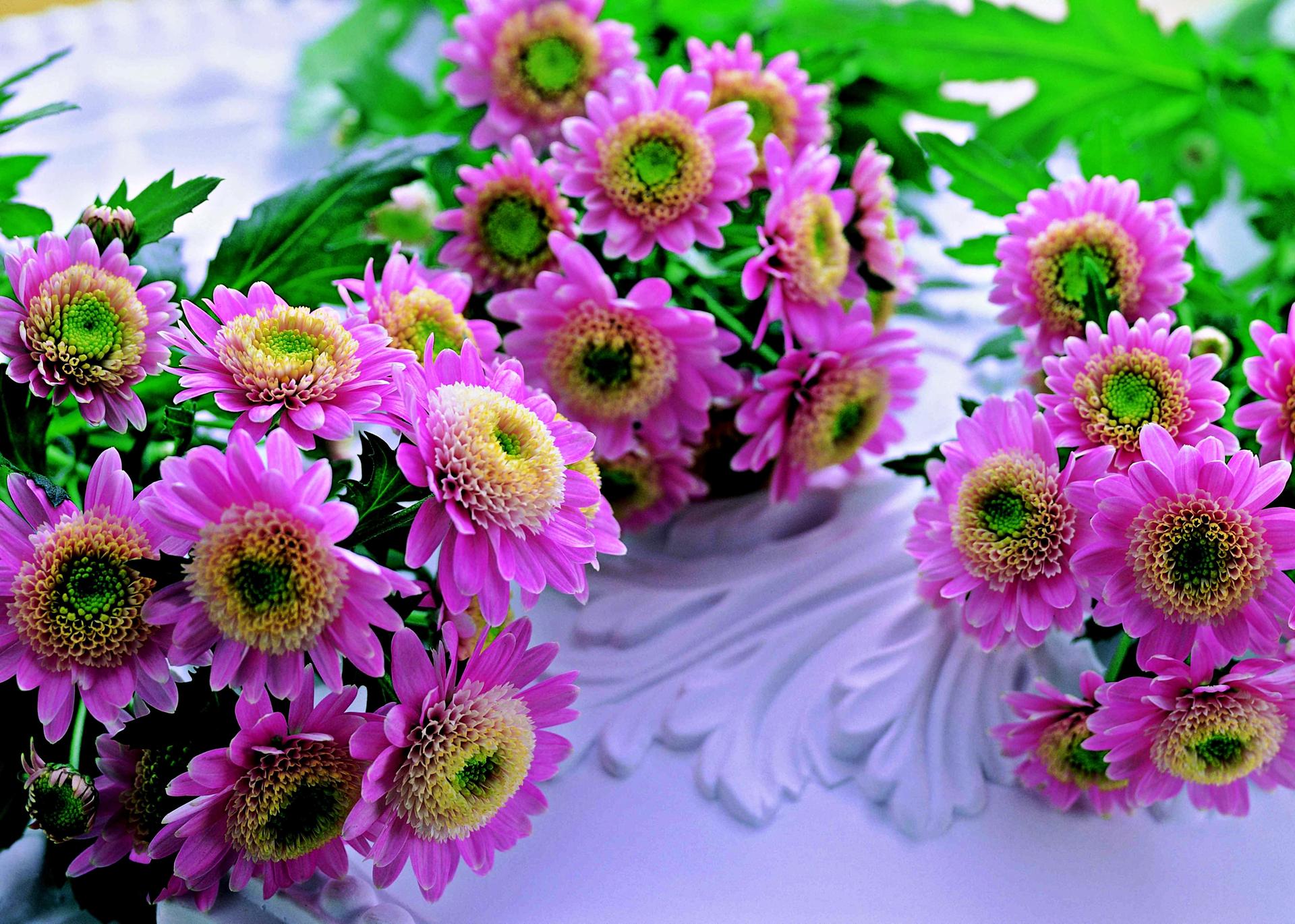 розовые хризантемы