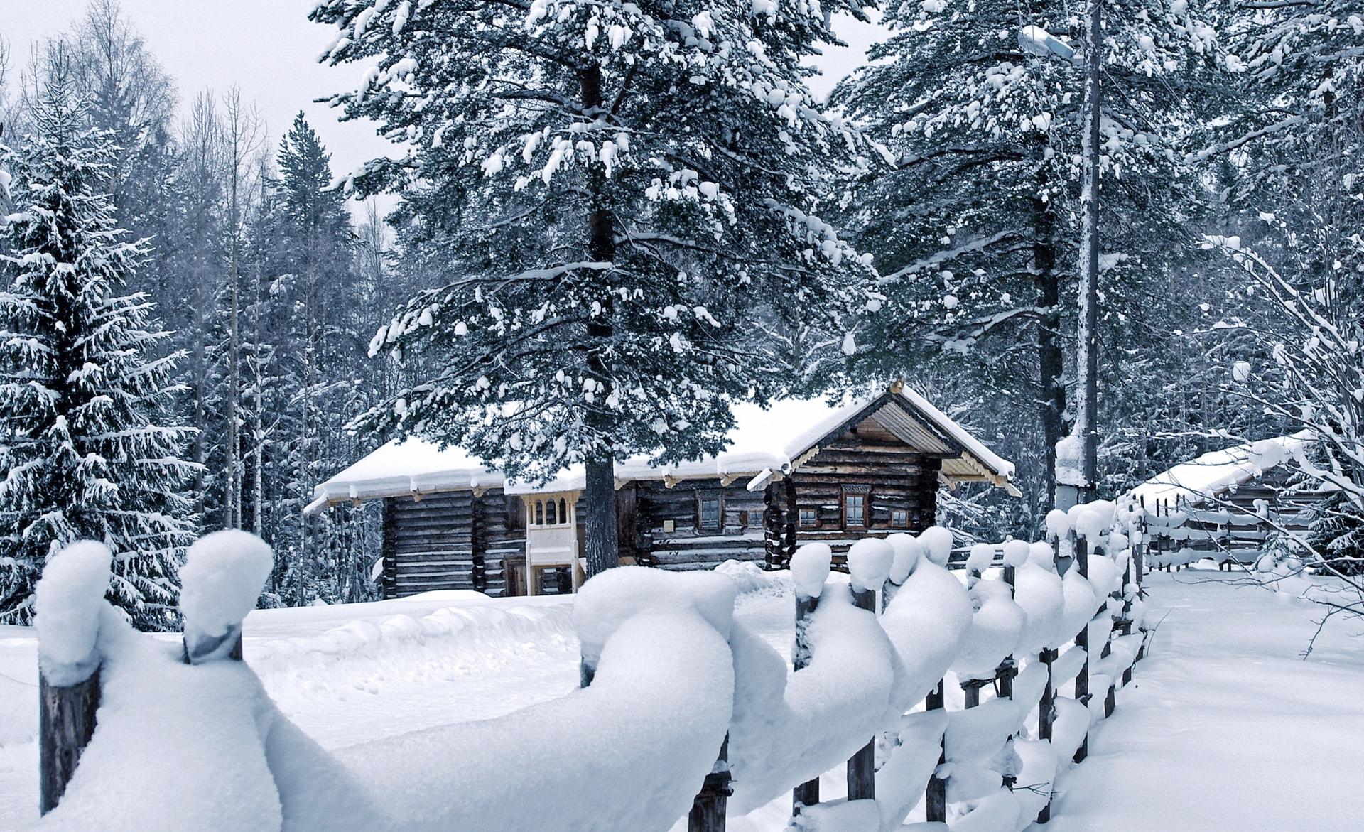 избушка в зимнем лесу