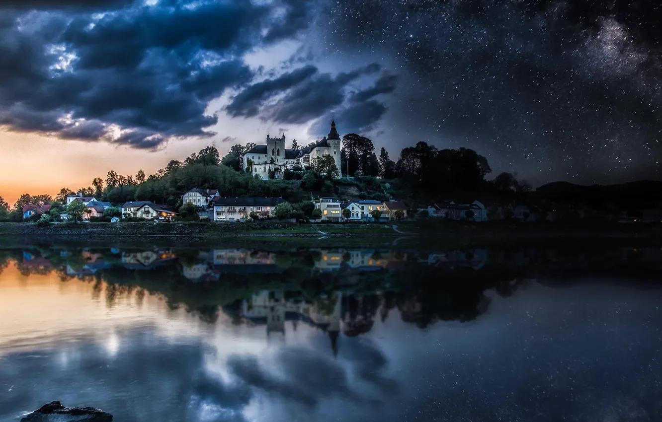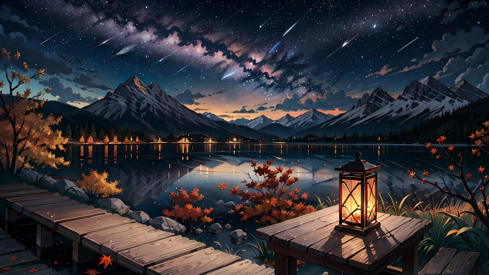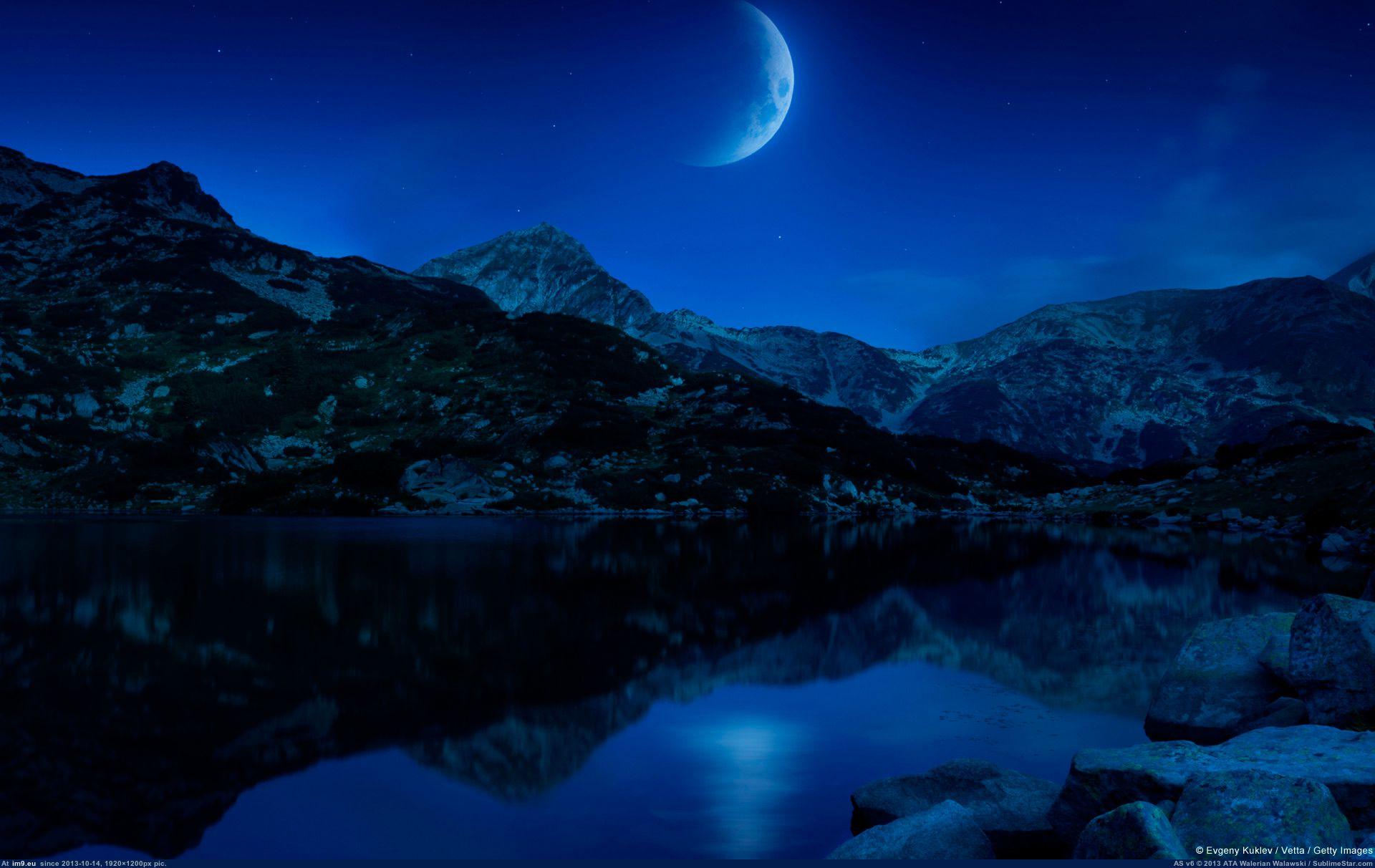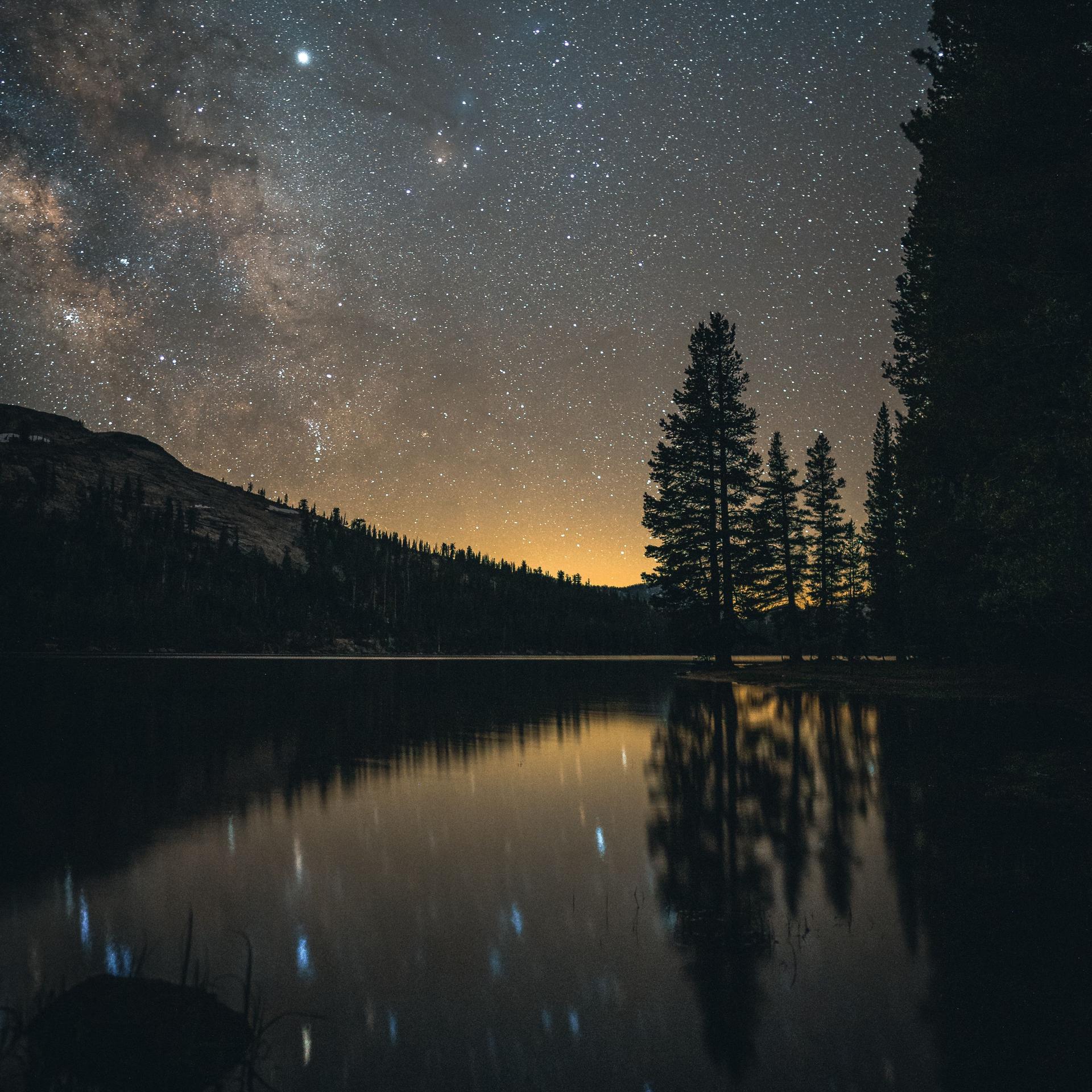 горное озеро ночью