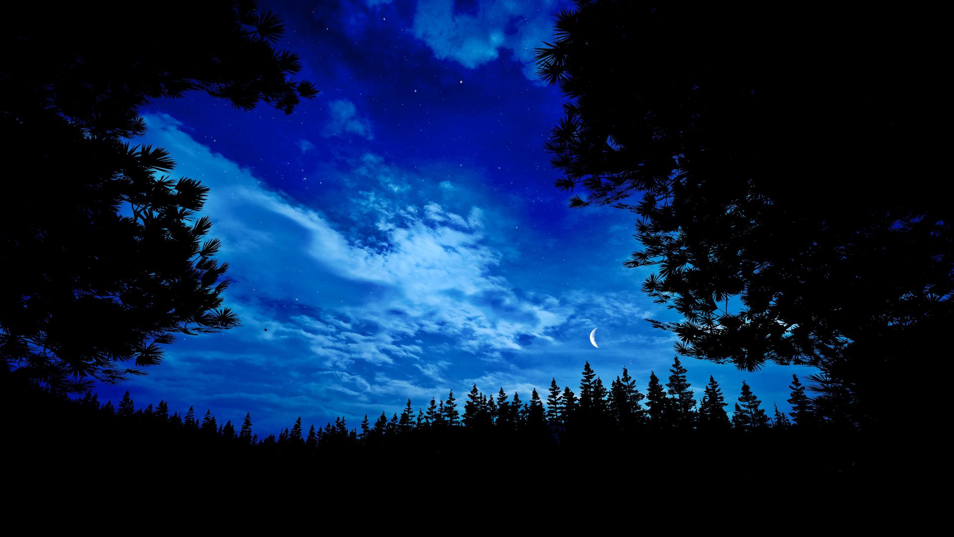 ночной лес с луной