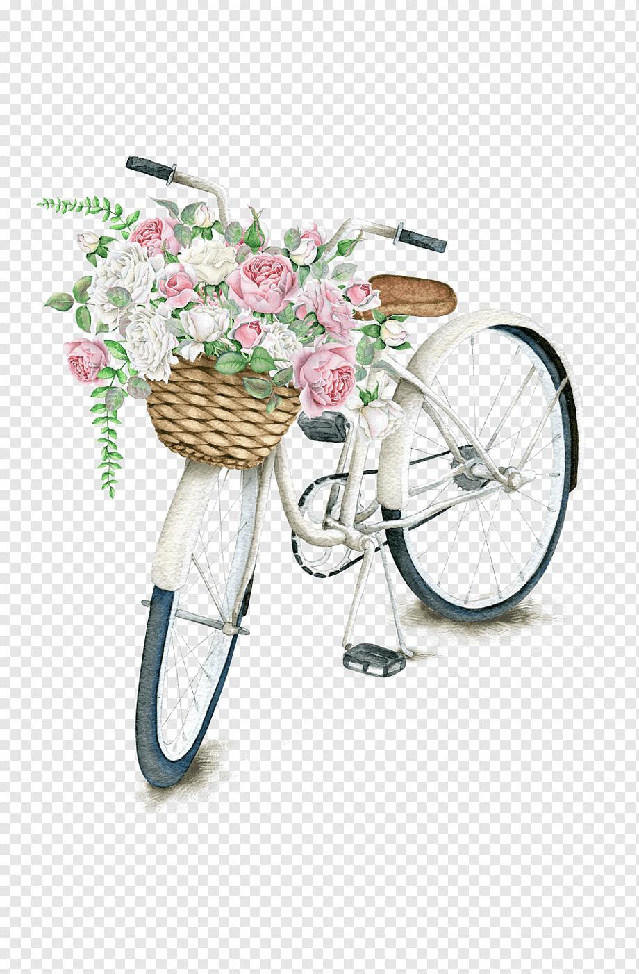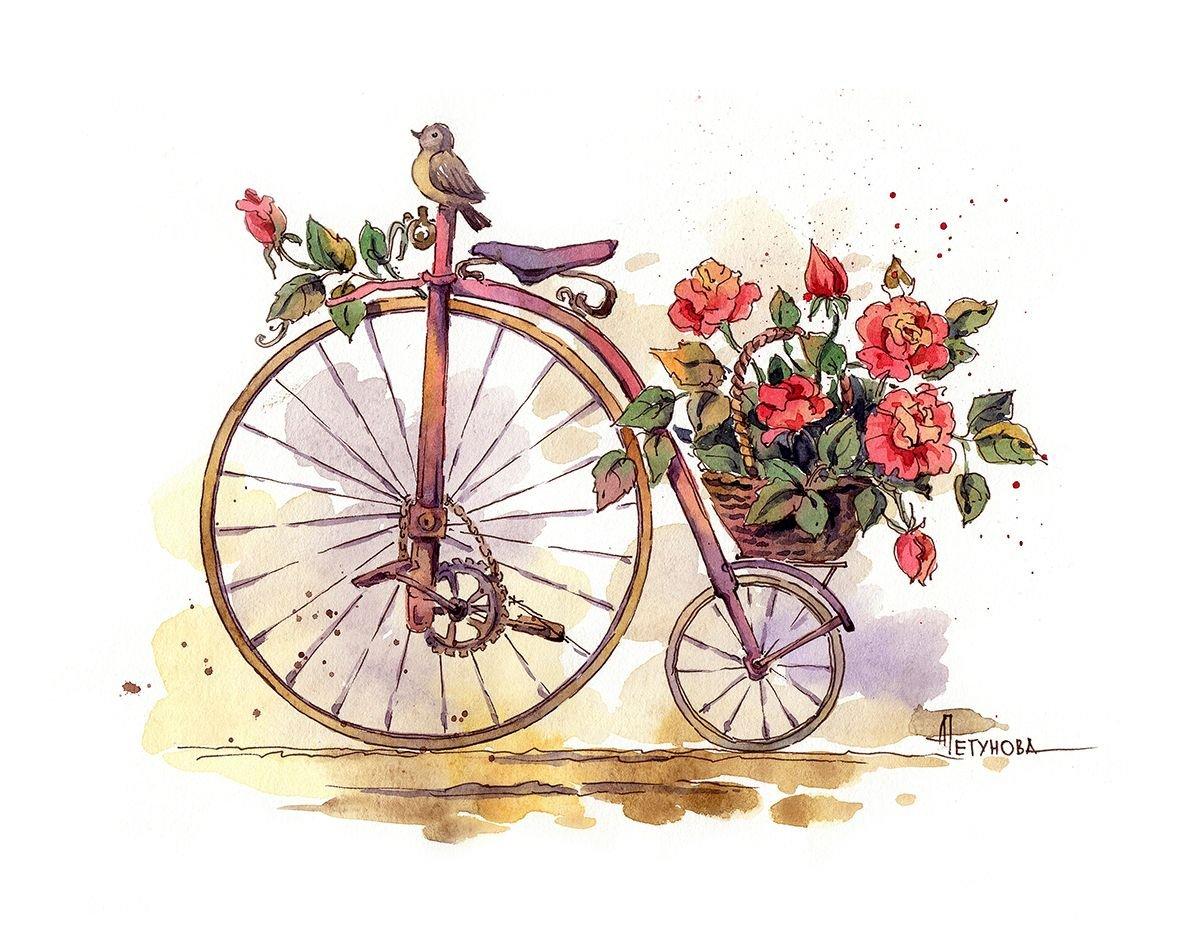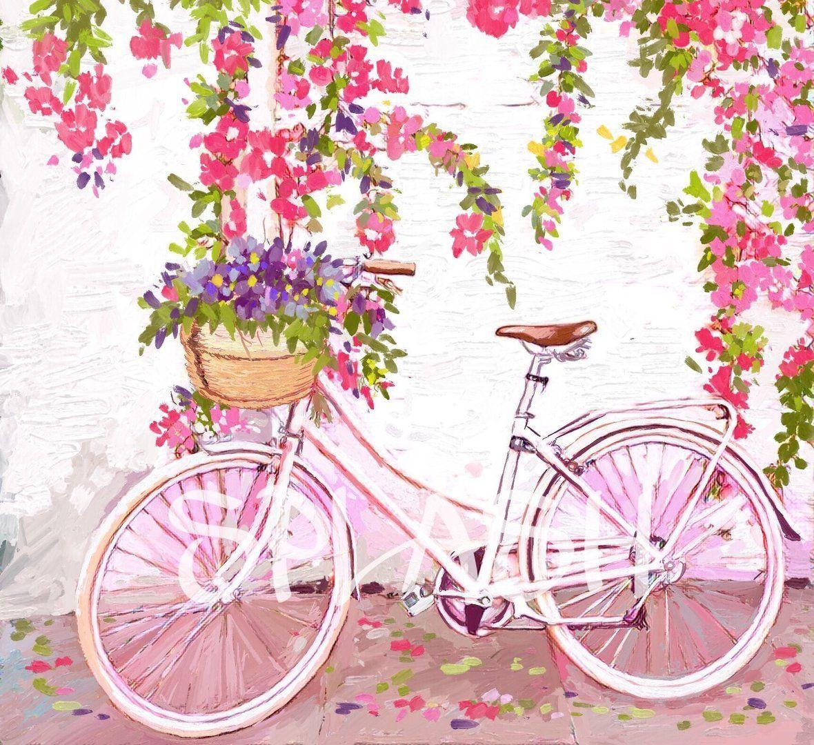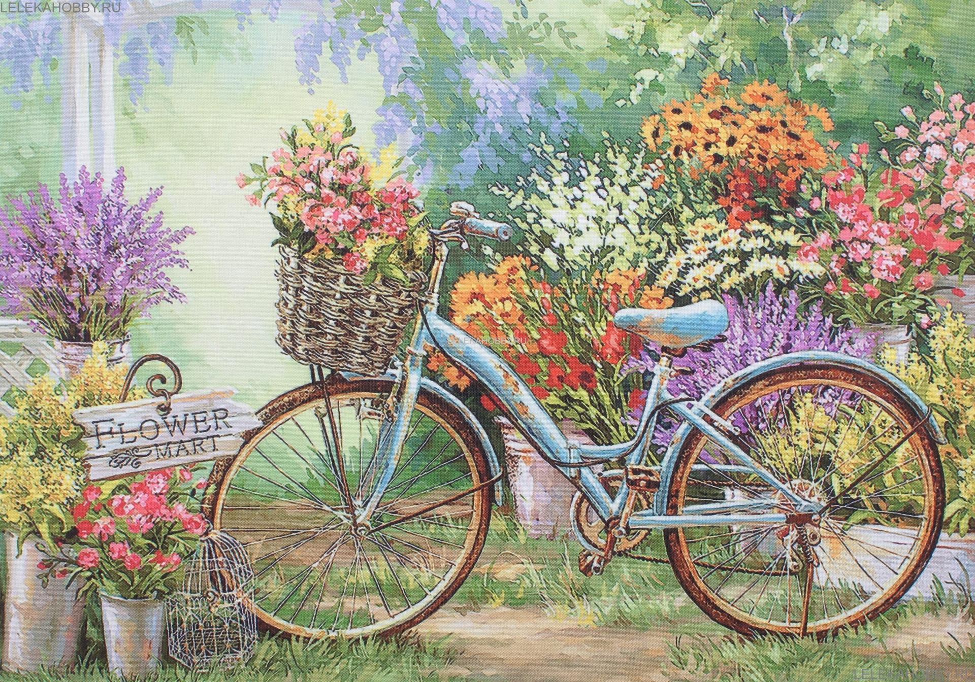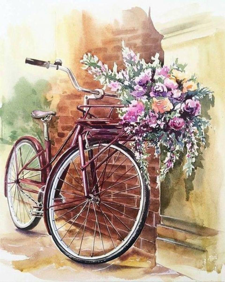 живопись с велосипедом и цветами