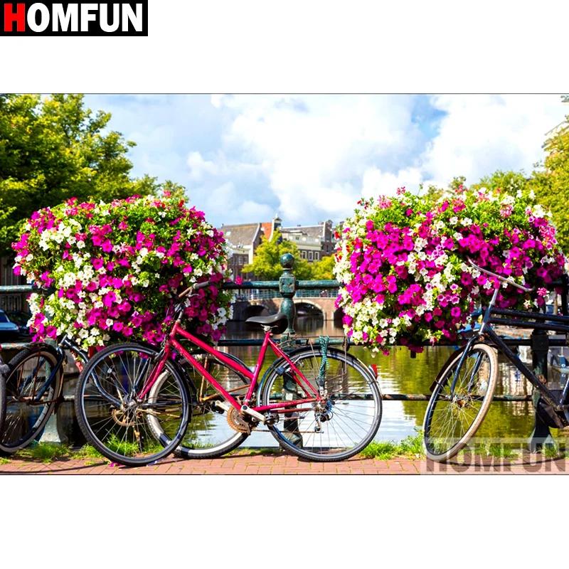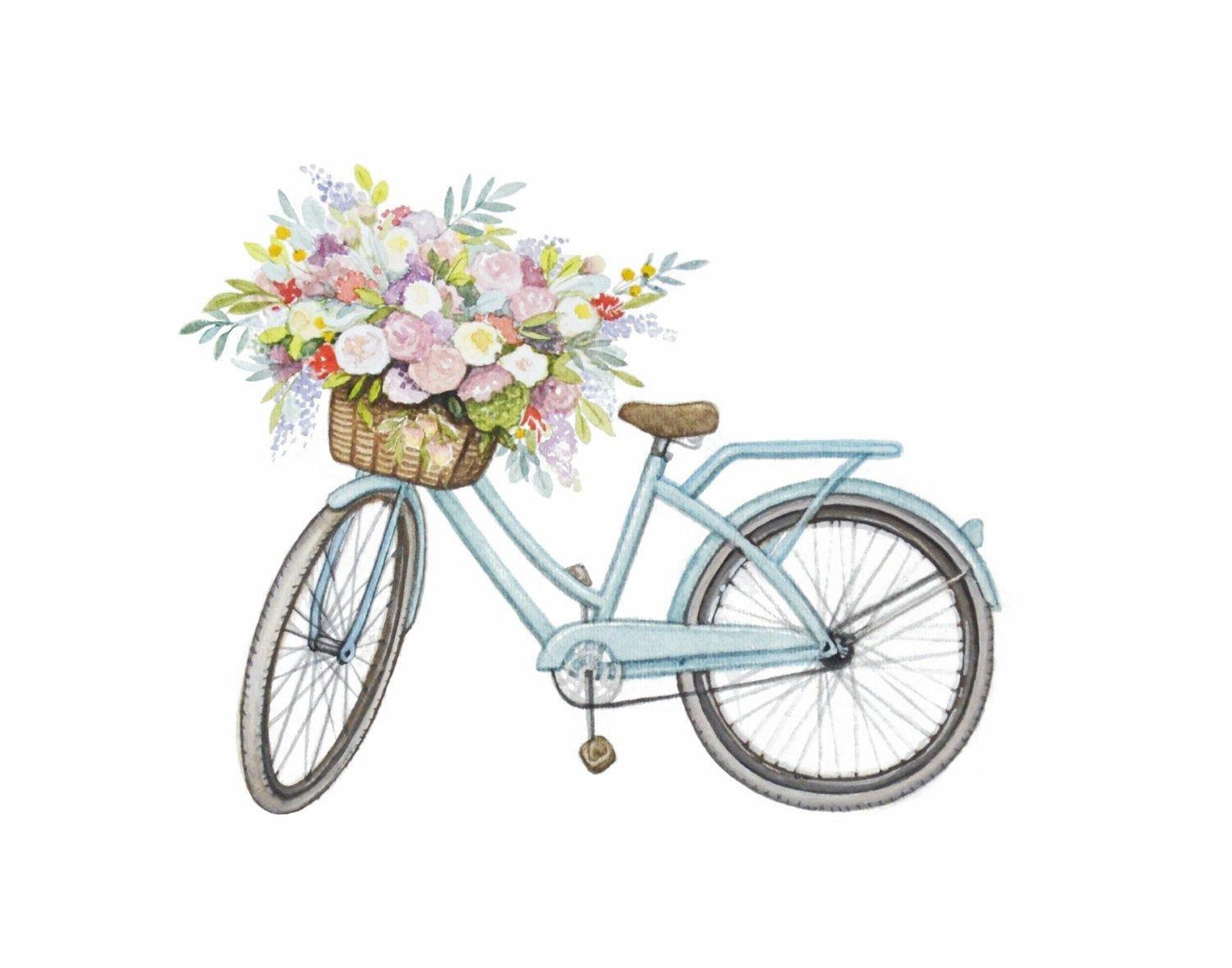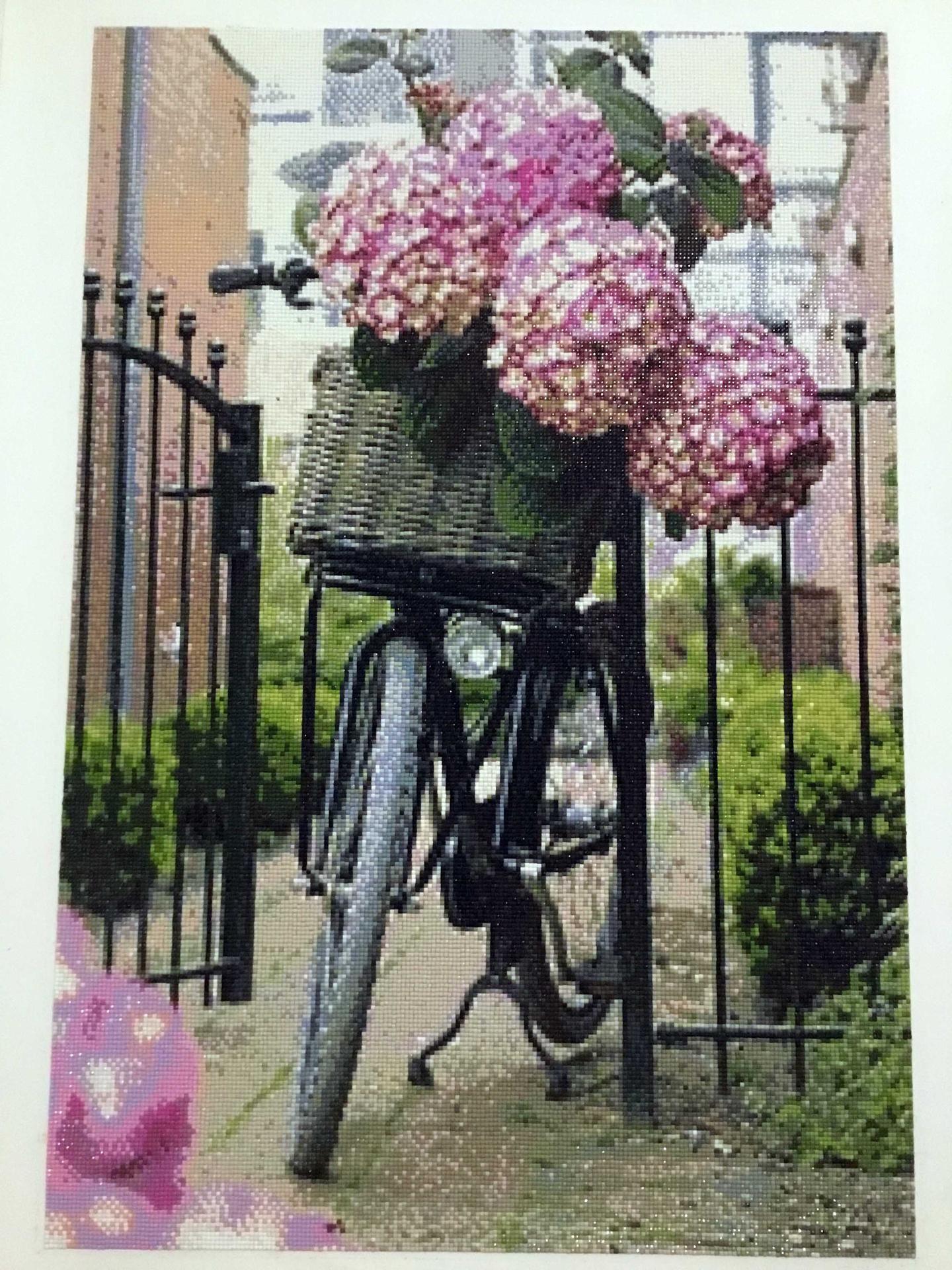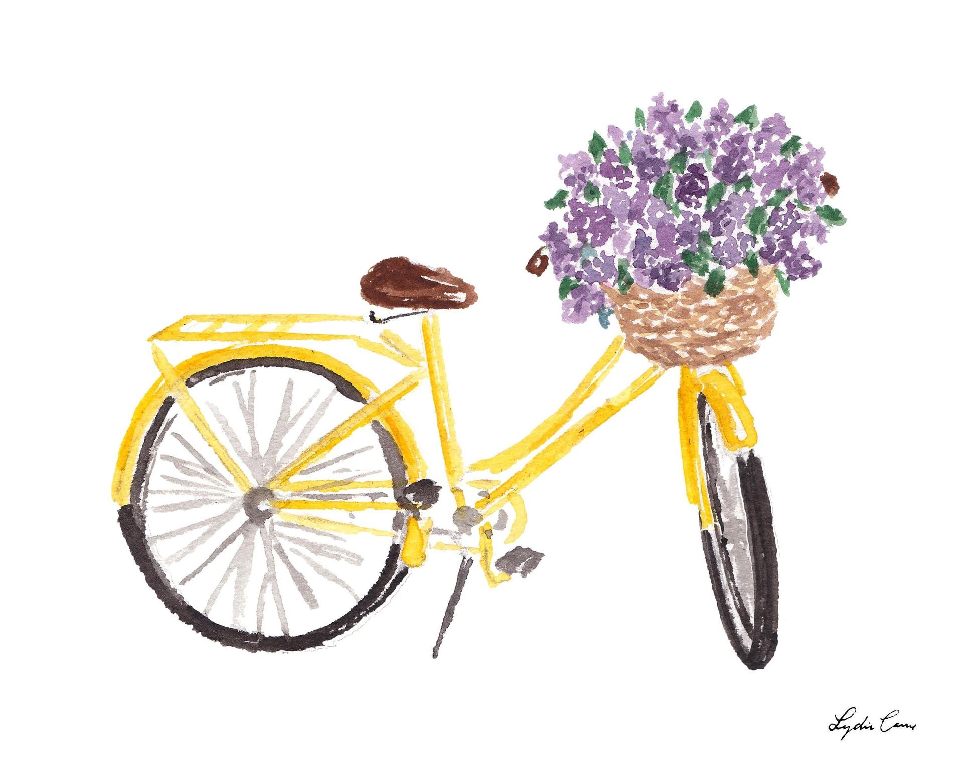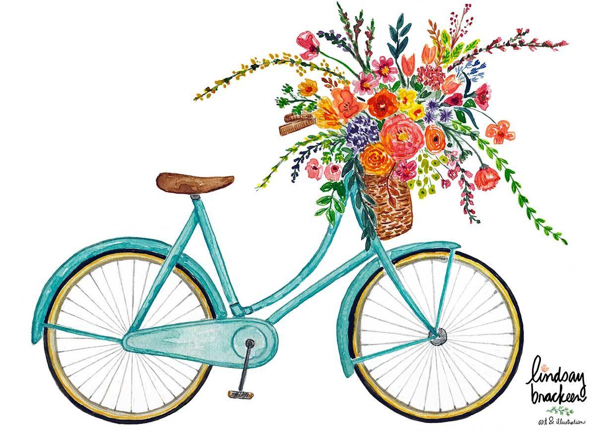 живопись с велосипедом и цветами