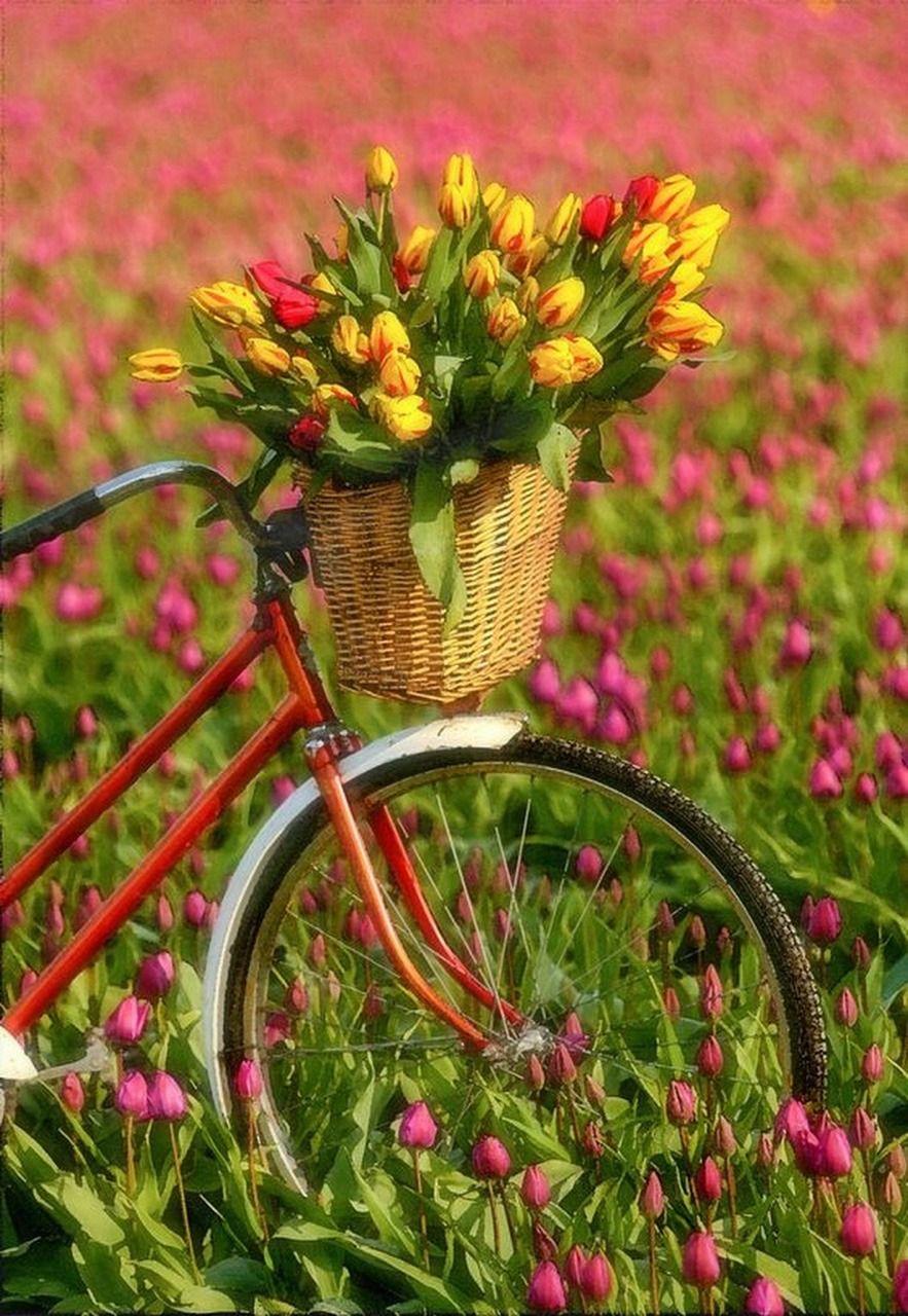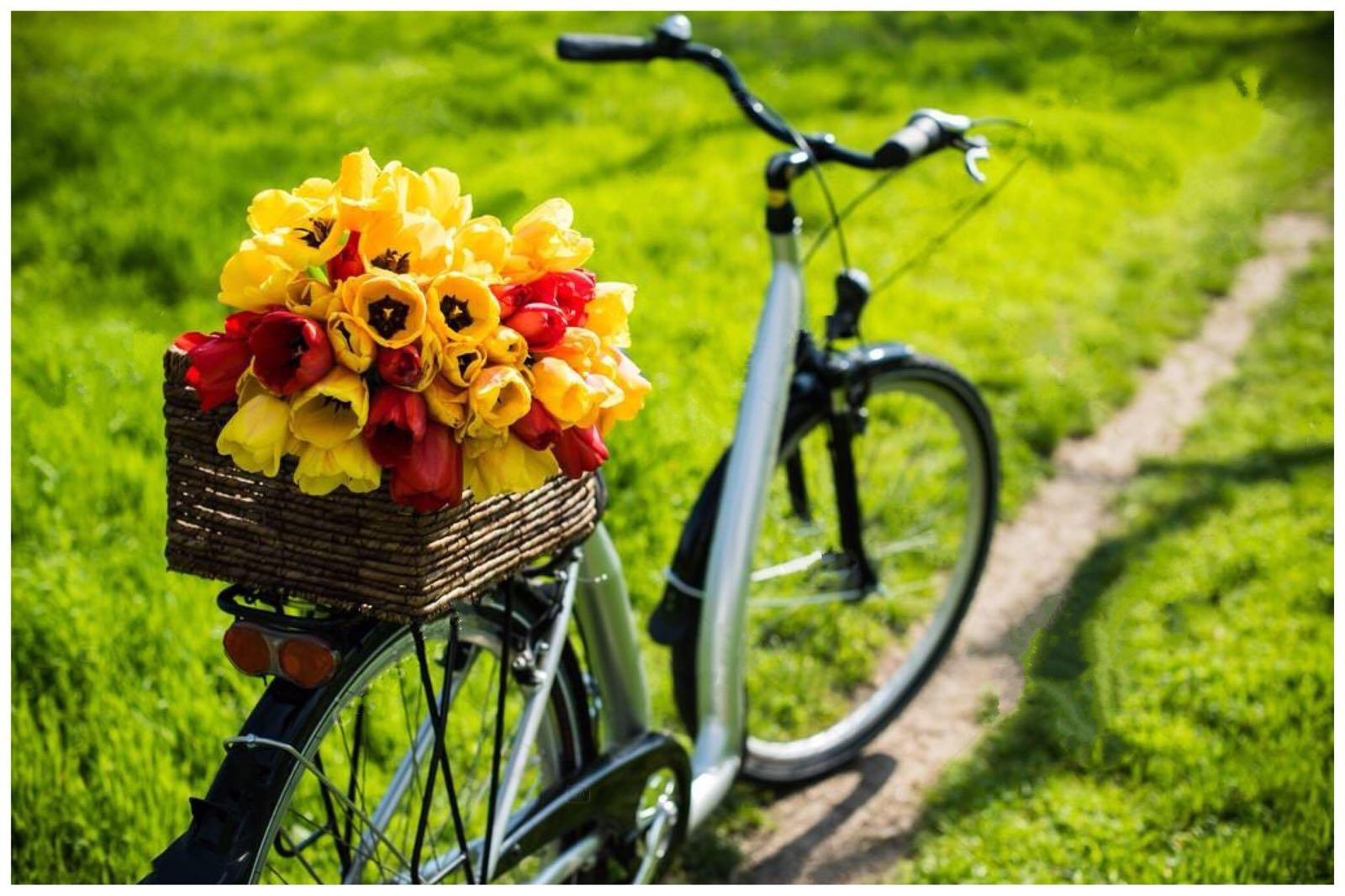велосипед и тюльпаны