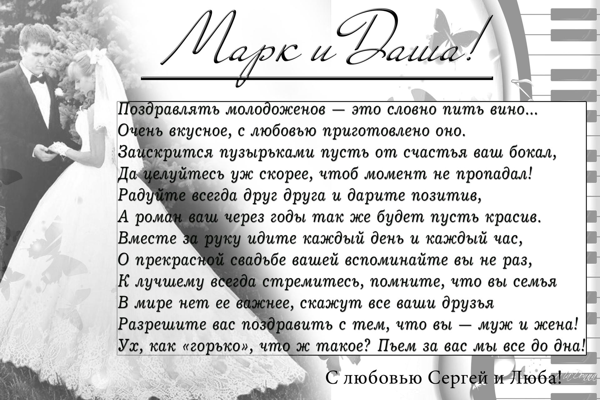 свадебное поздравление молодоженам