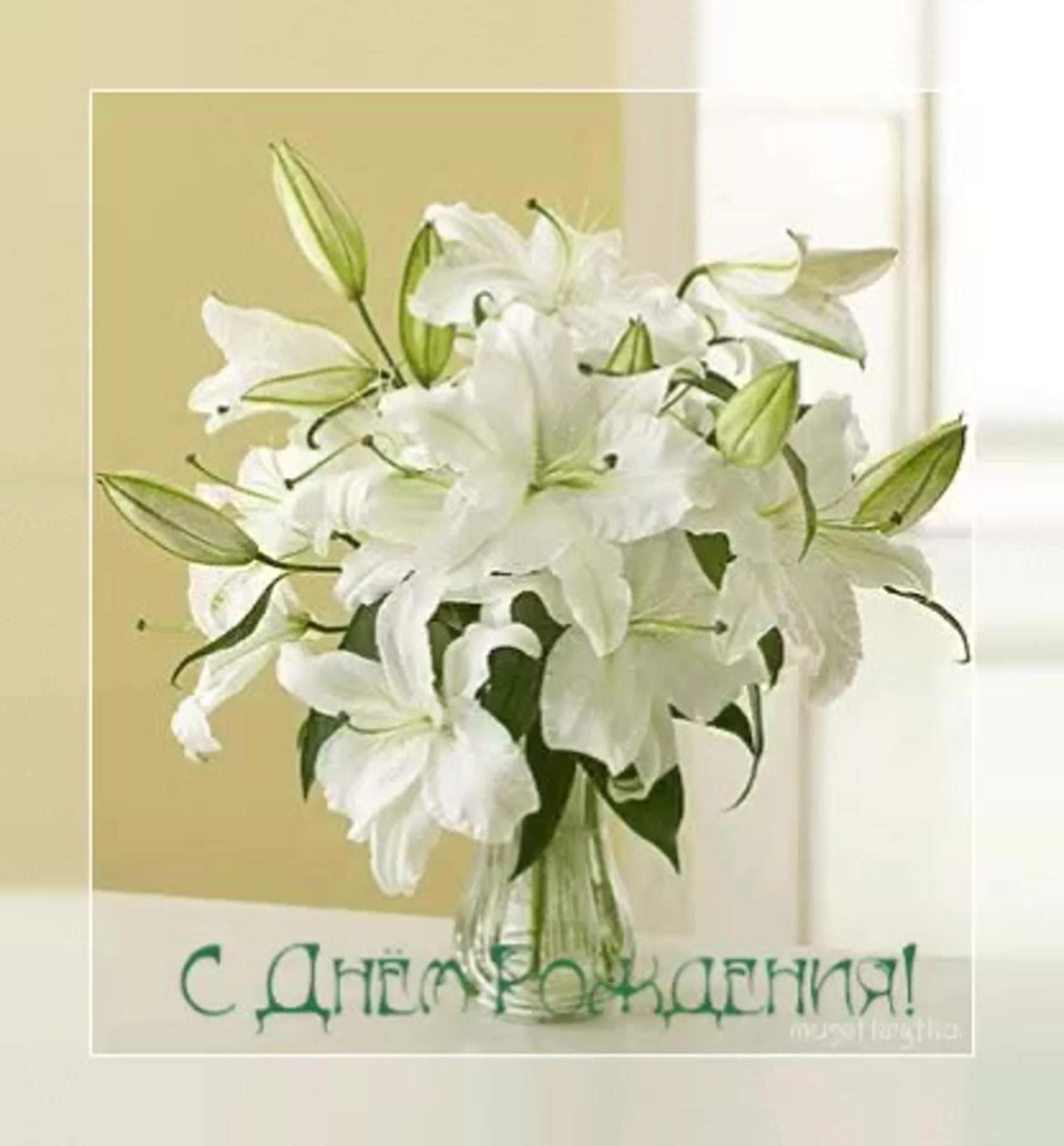 открытки с днём рождения женщине красивые с лилиями