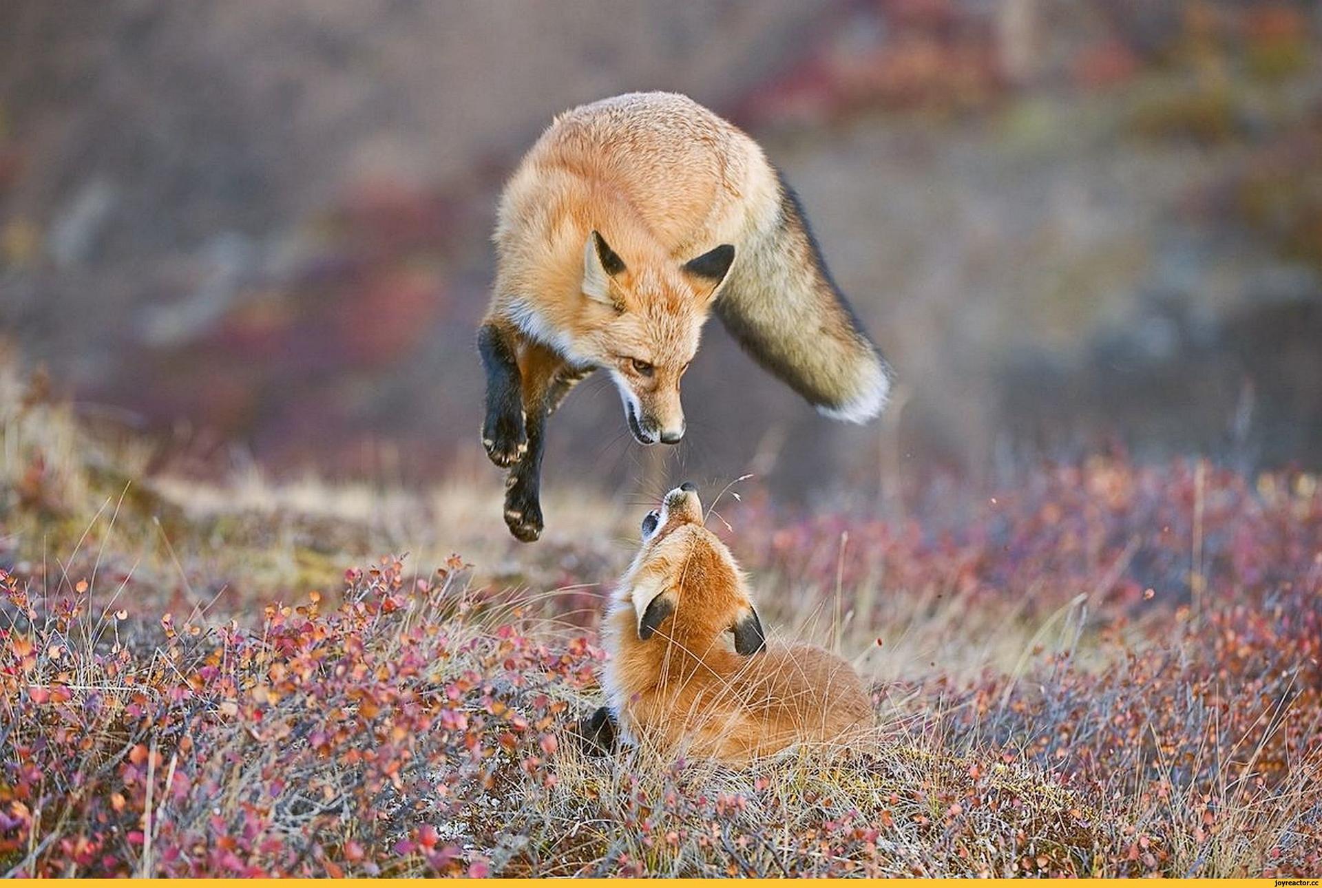 лиса охотится