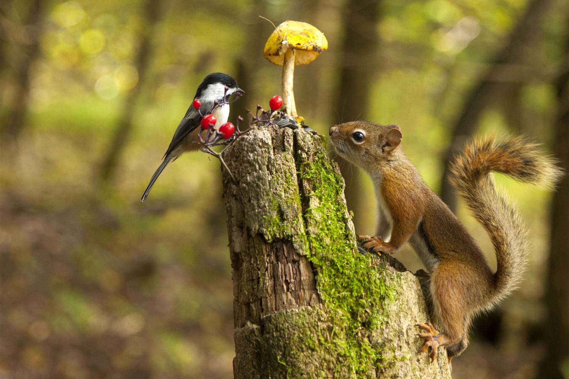 птичка и белка