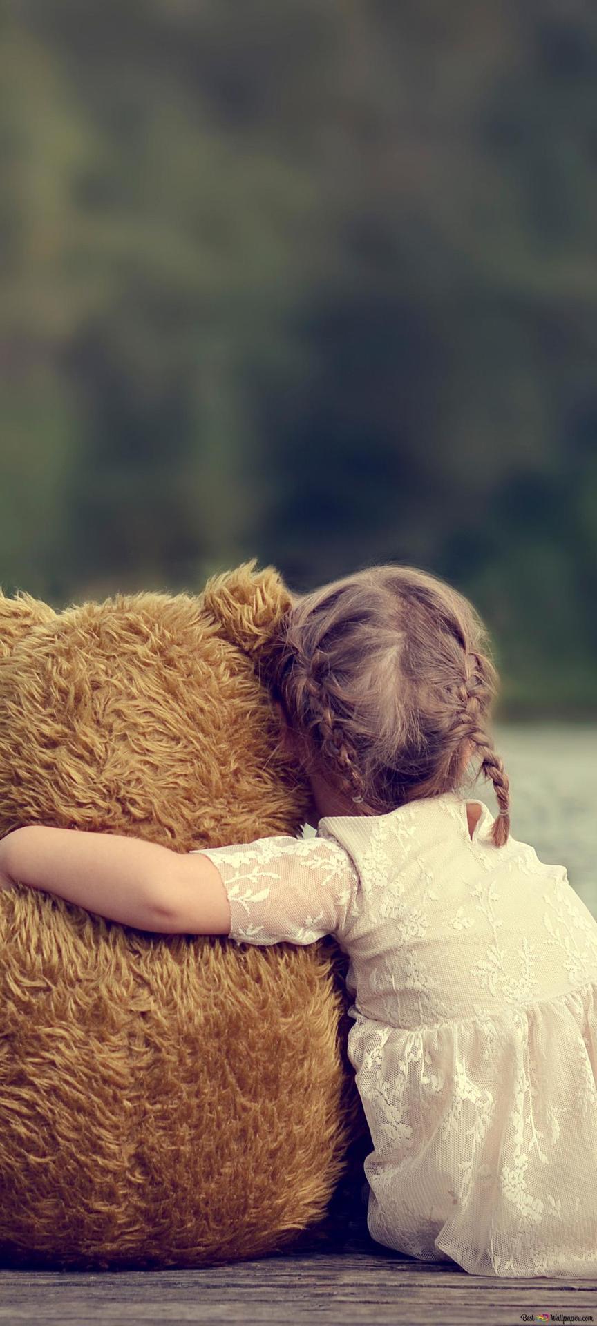 девушка обнимает мишку