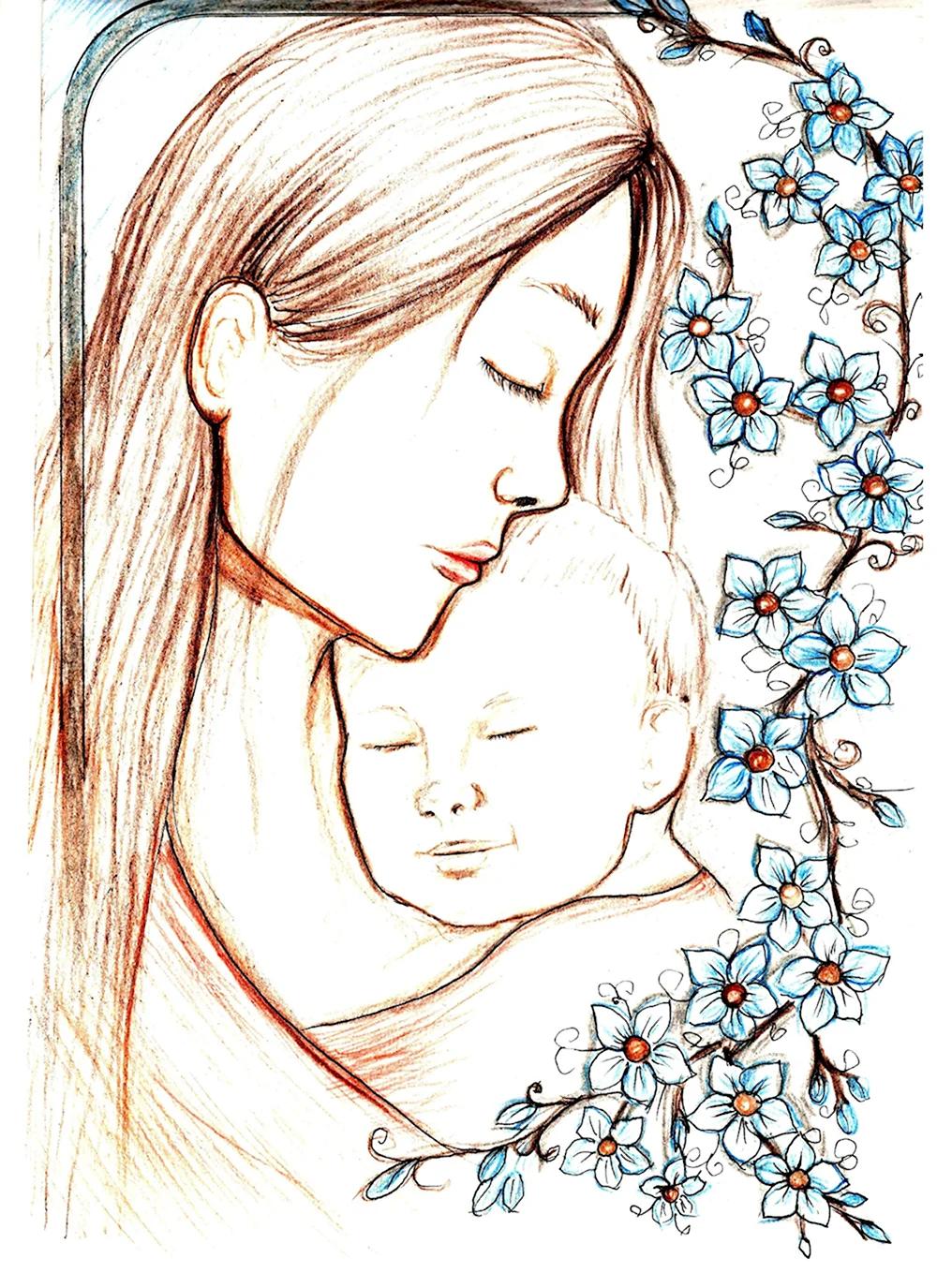 мать и дитя рисунок