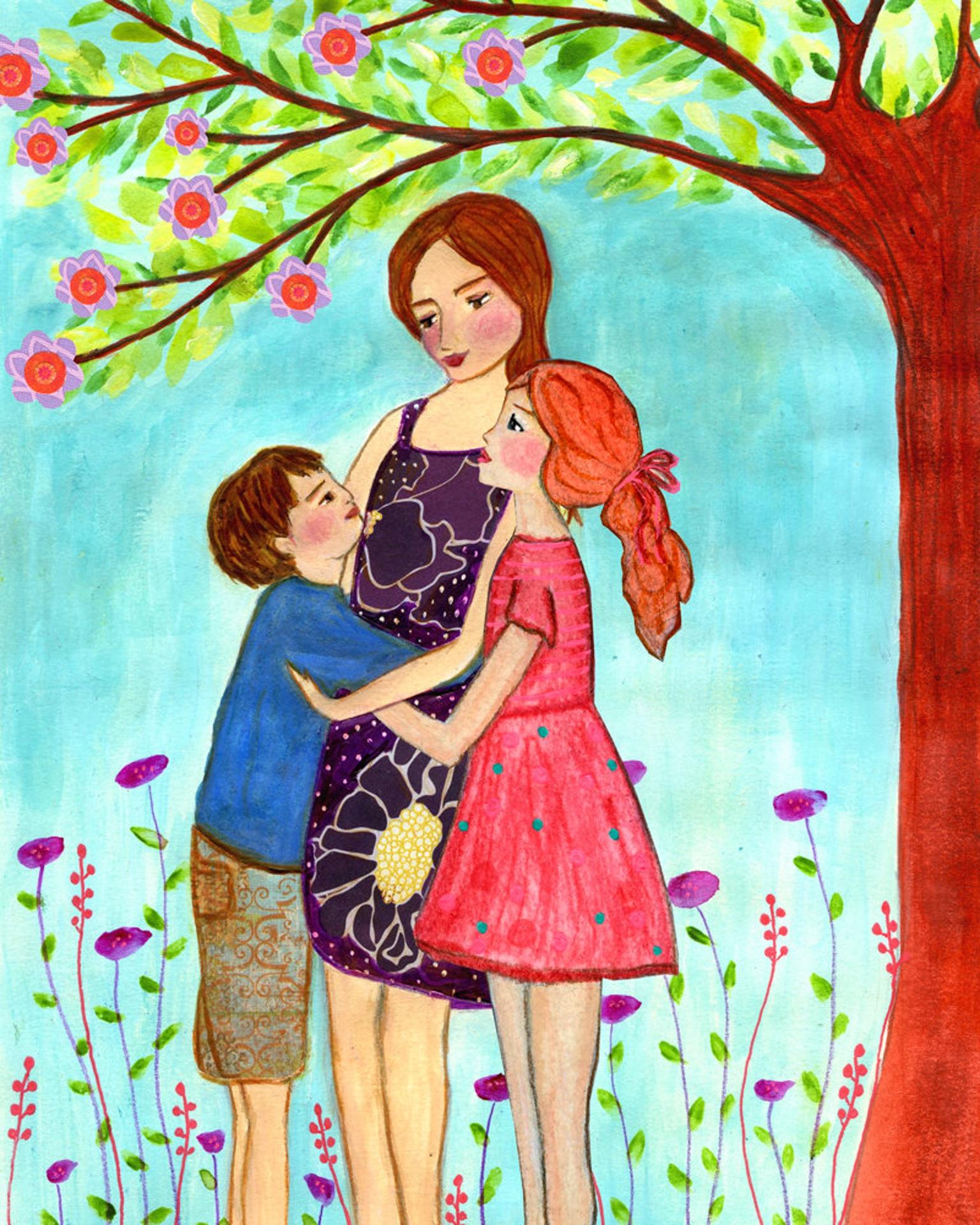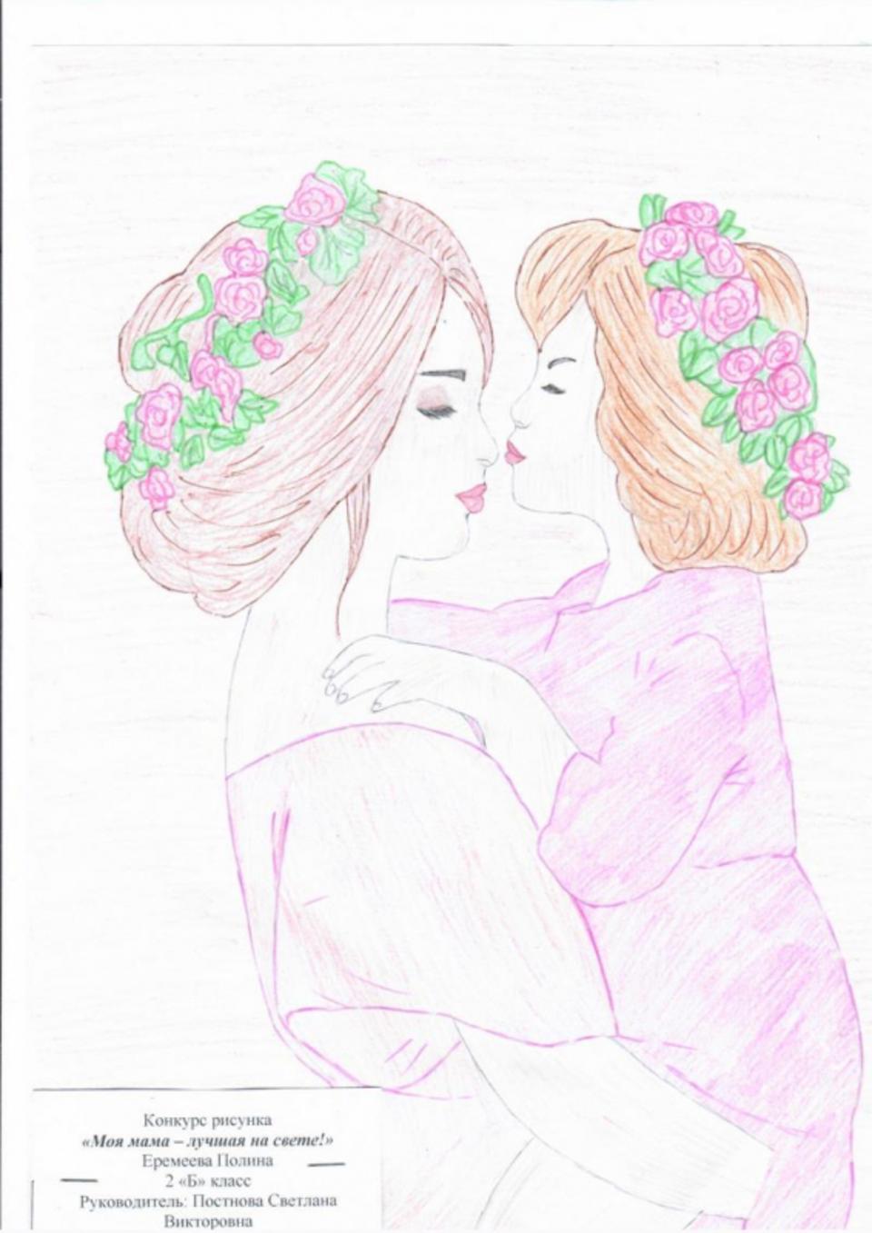 мама и дочка рисунок