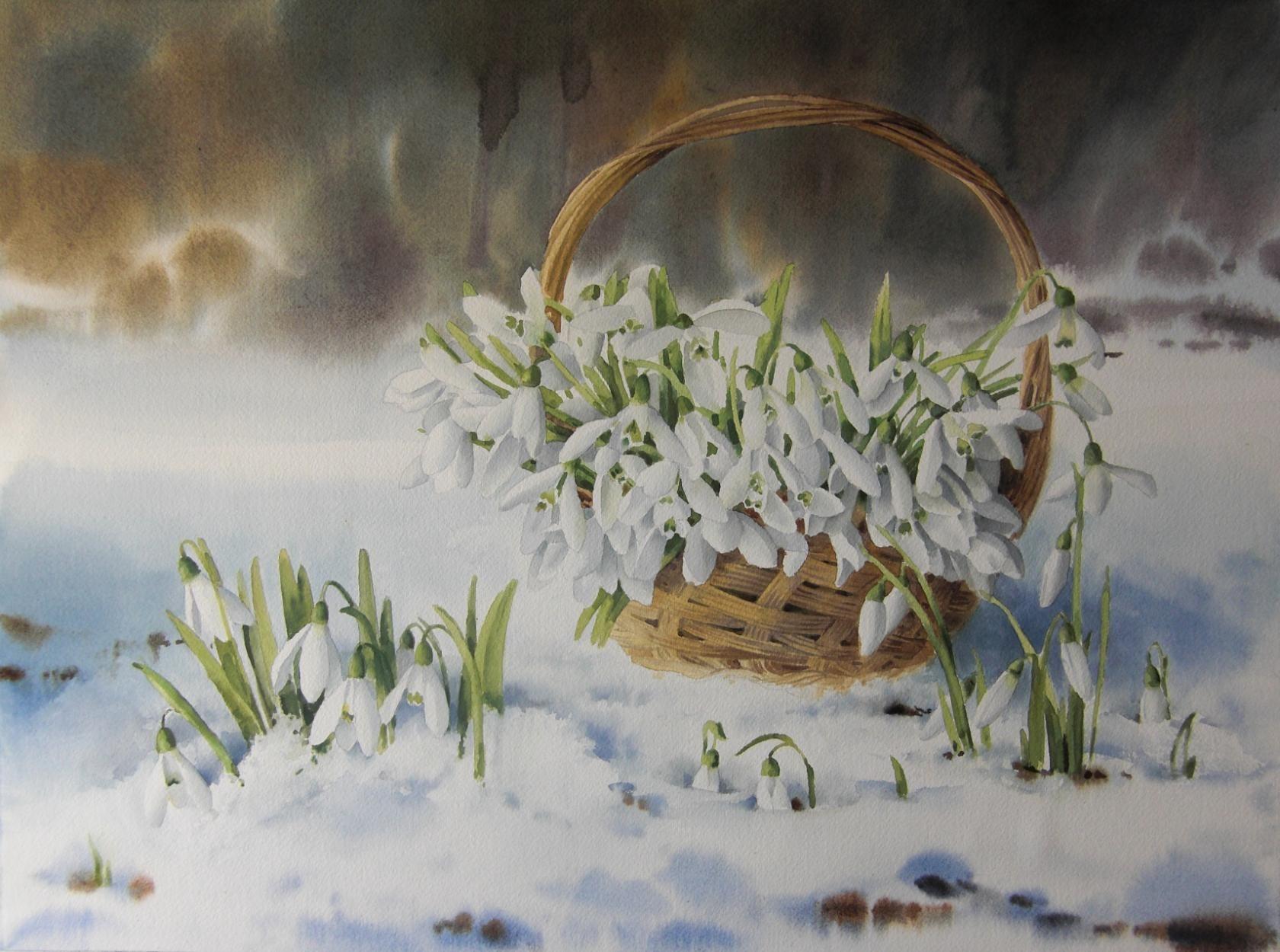 корзина подснежников