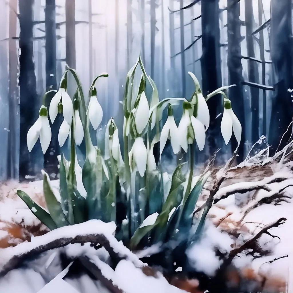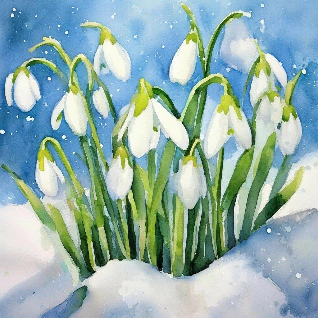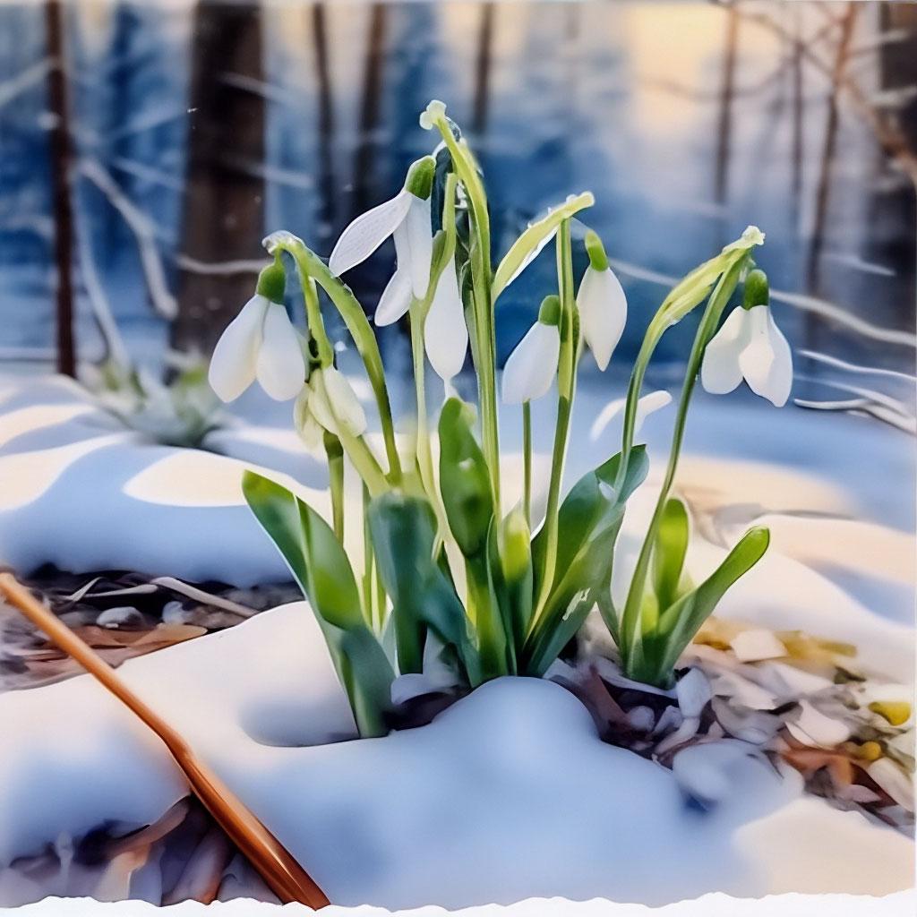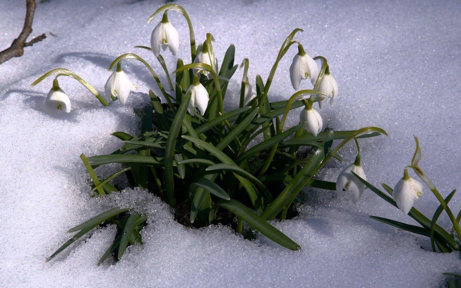 подснежники в снегу