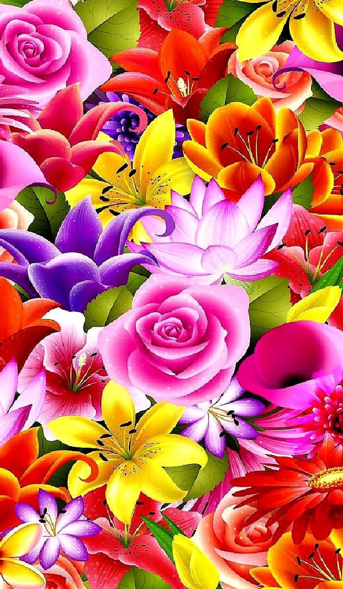 много цветов фон
