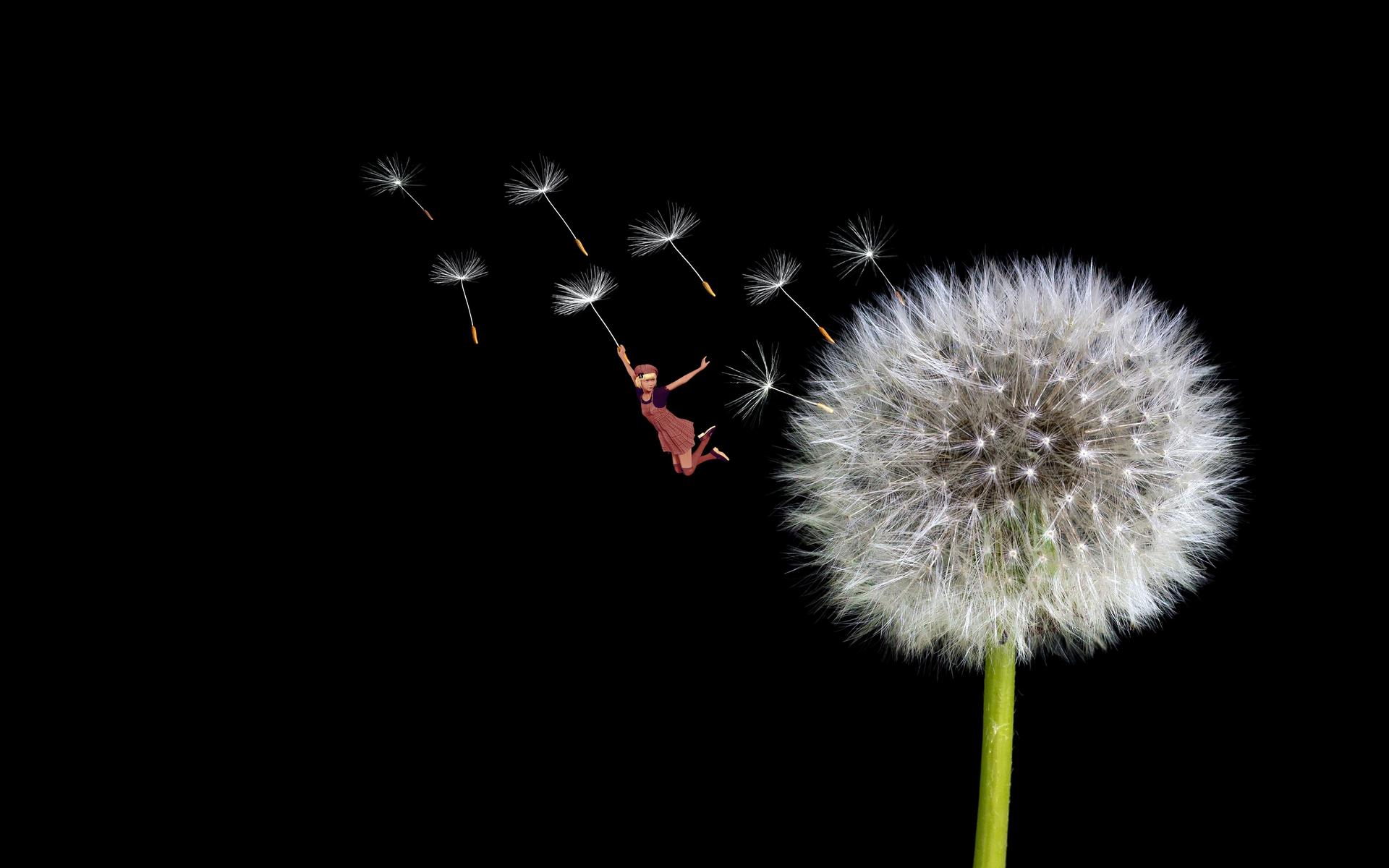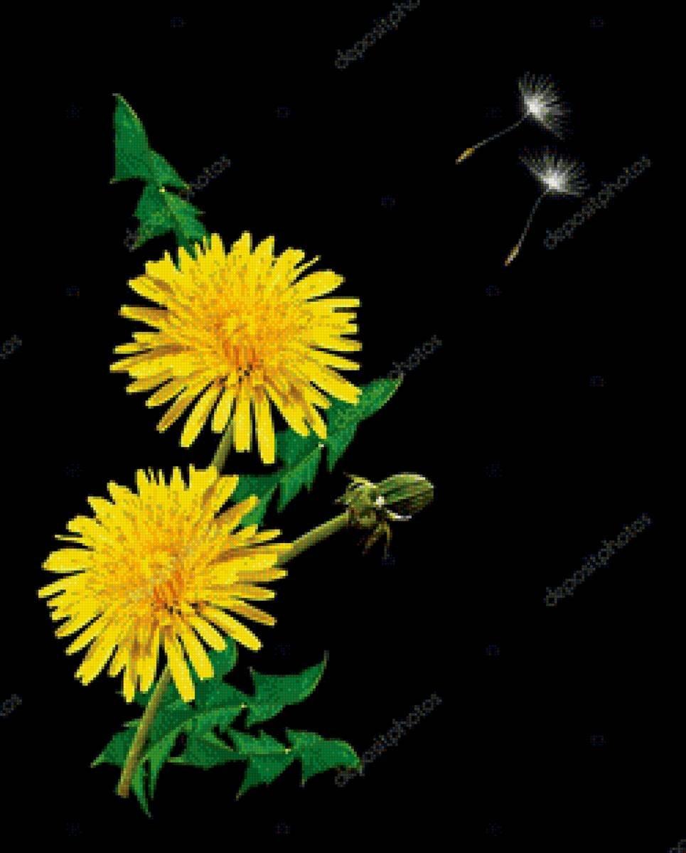 одуванчики на черном фоне