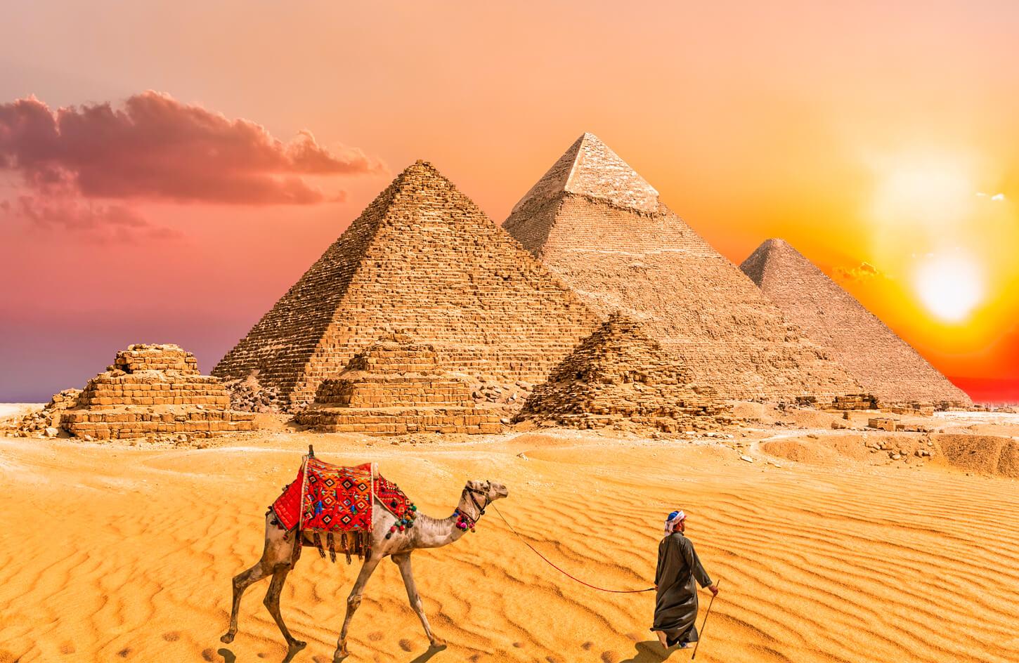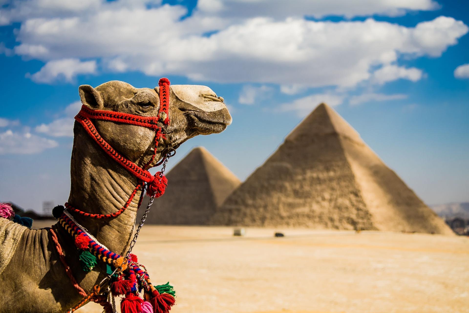 пирамиды древнего египта с верблюдом