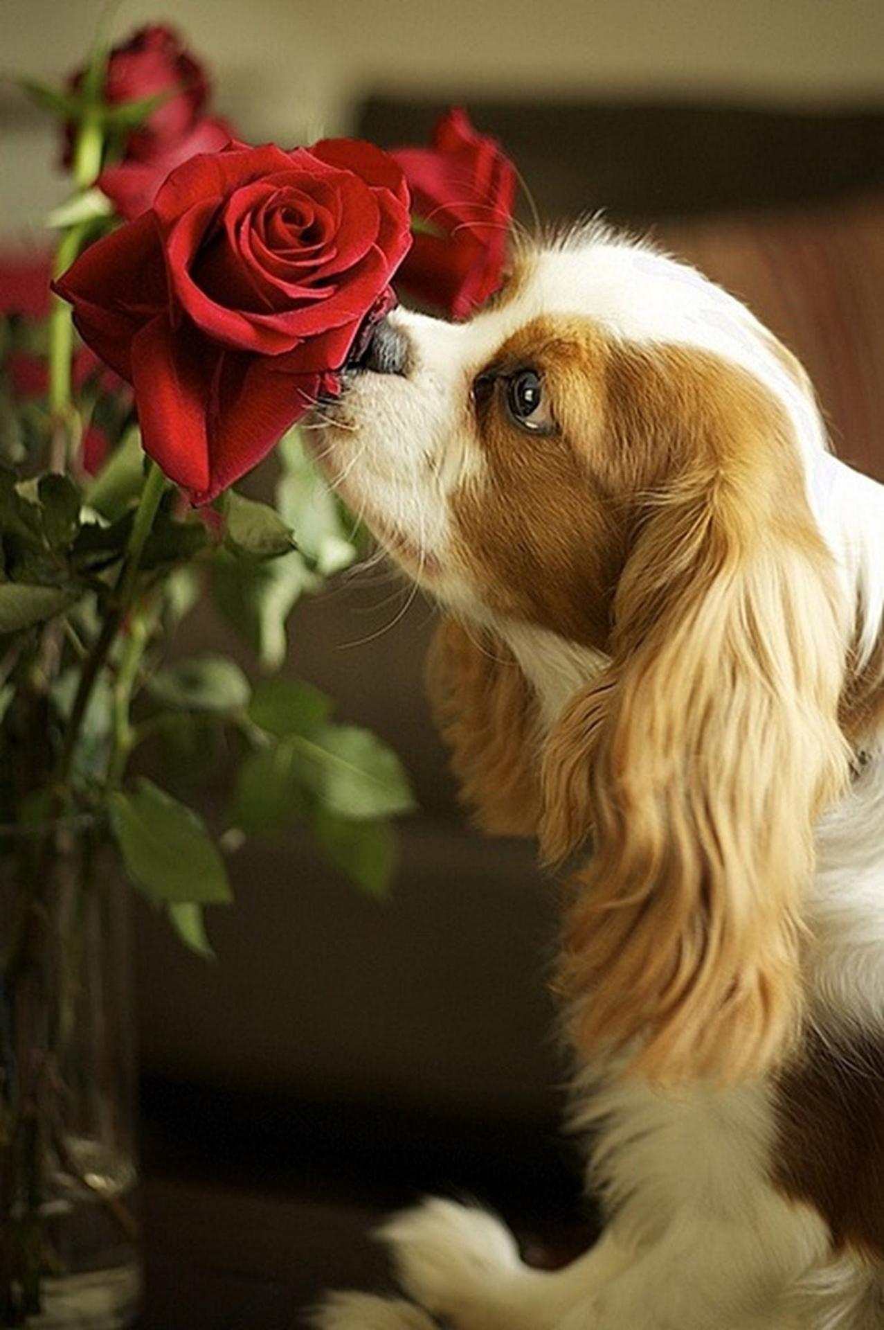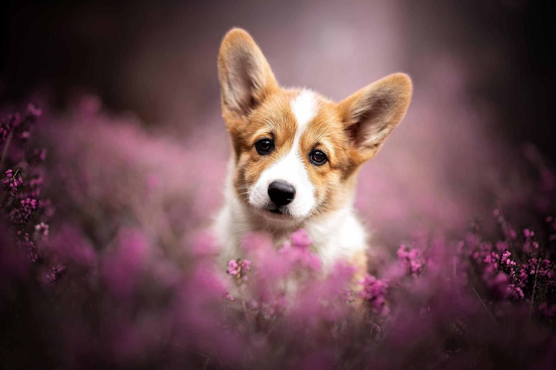 собачка цветок