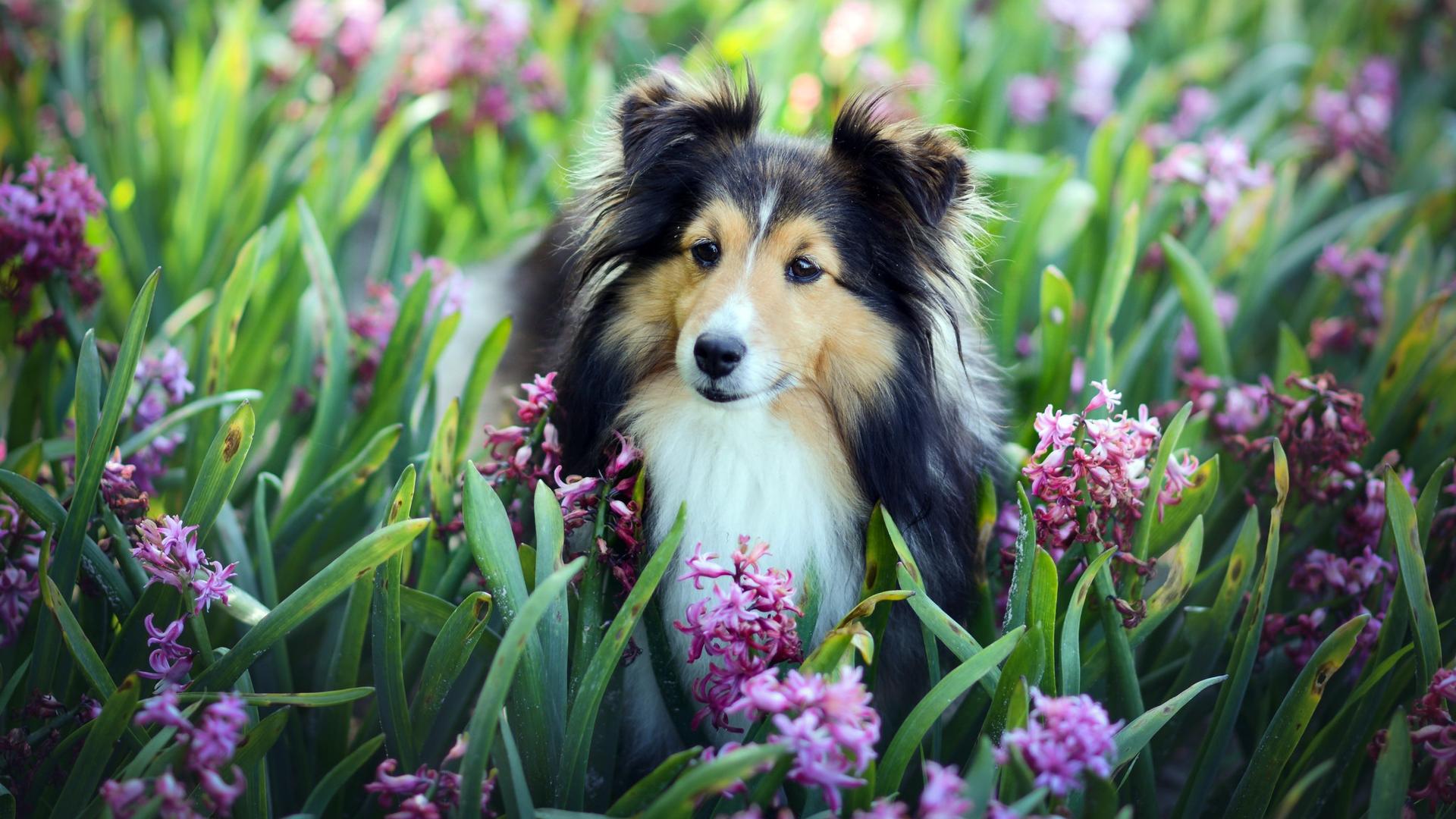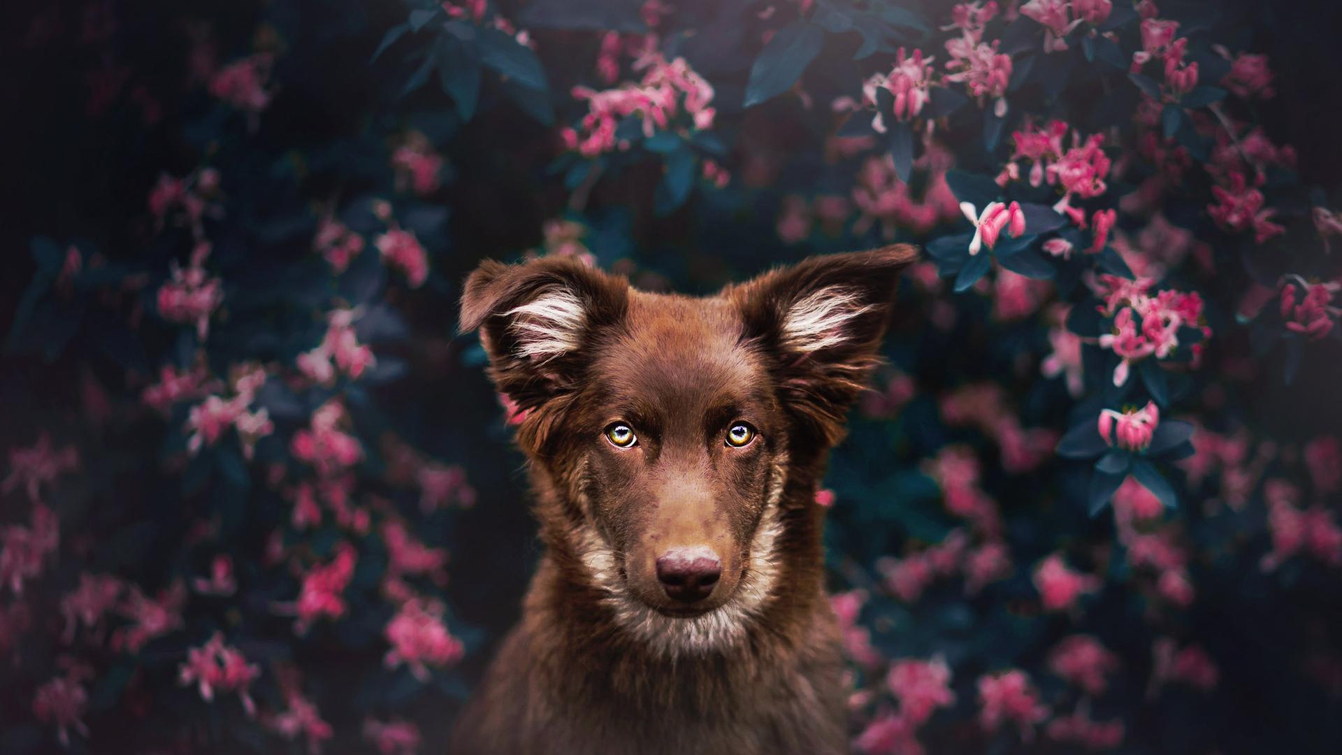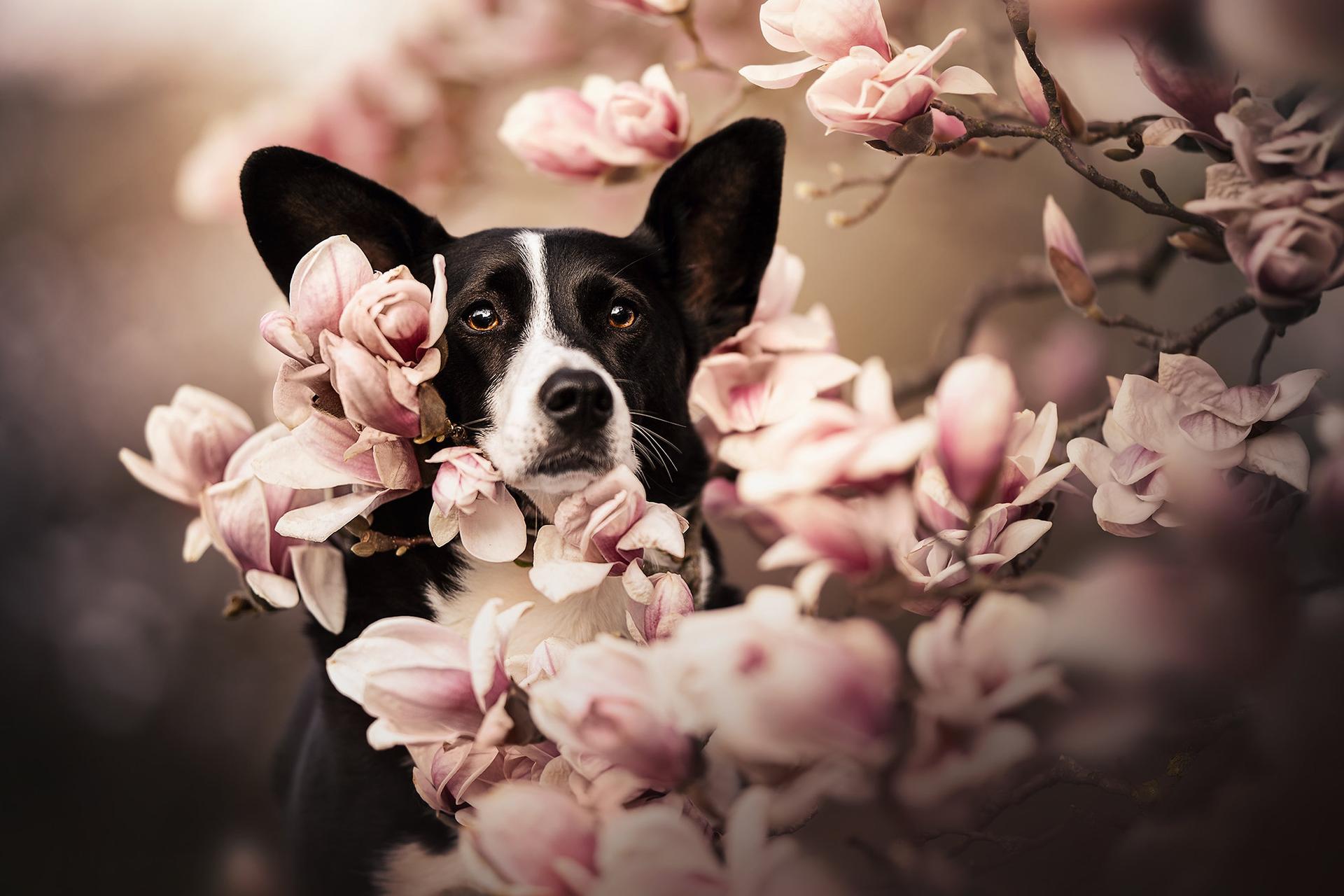 собачка с цветами