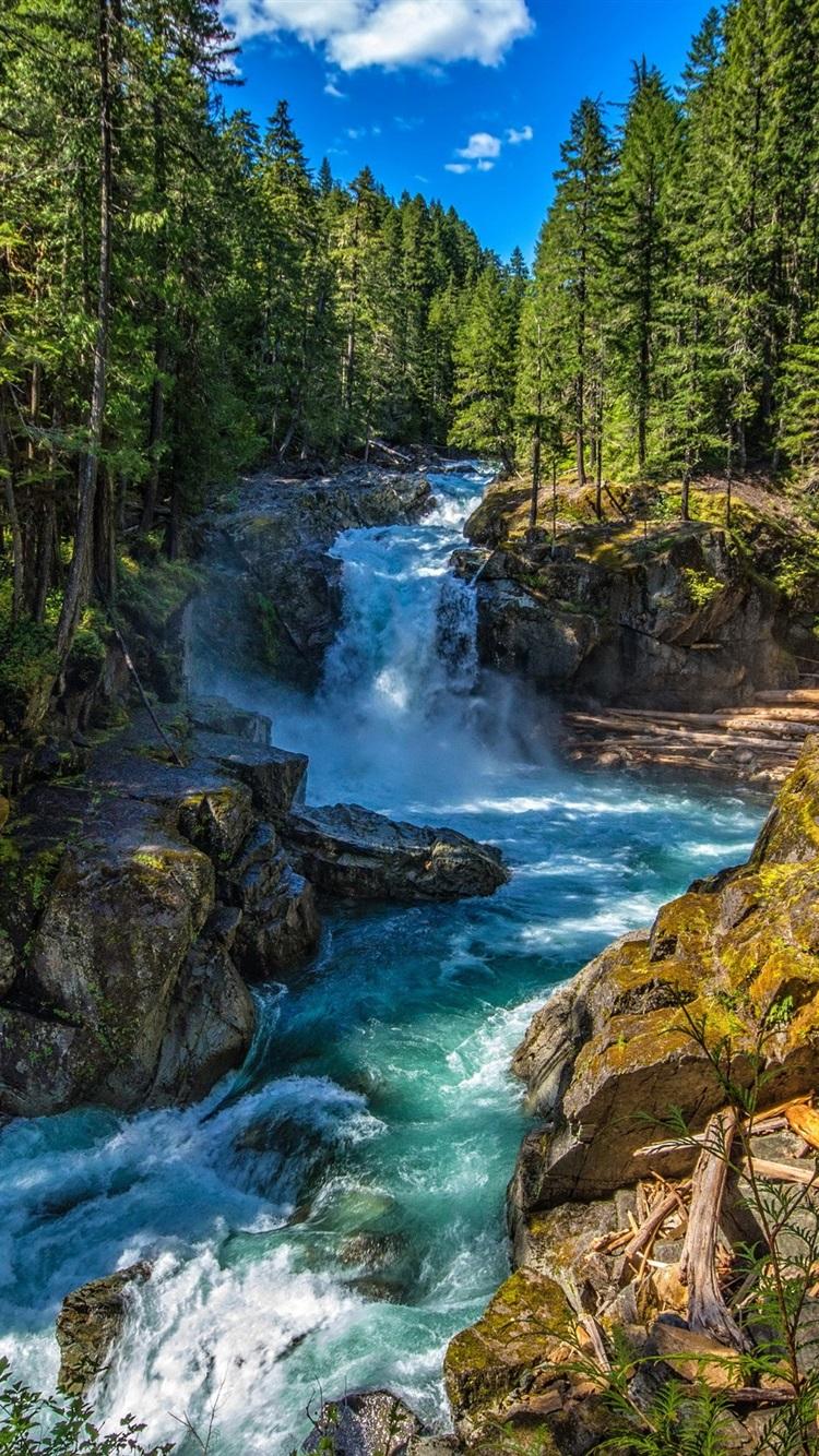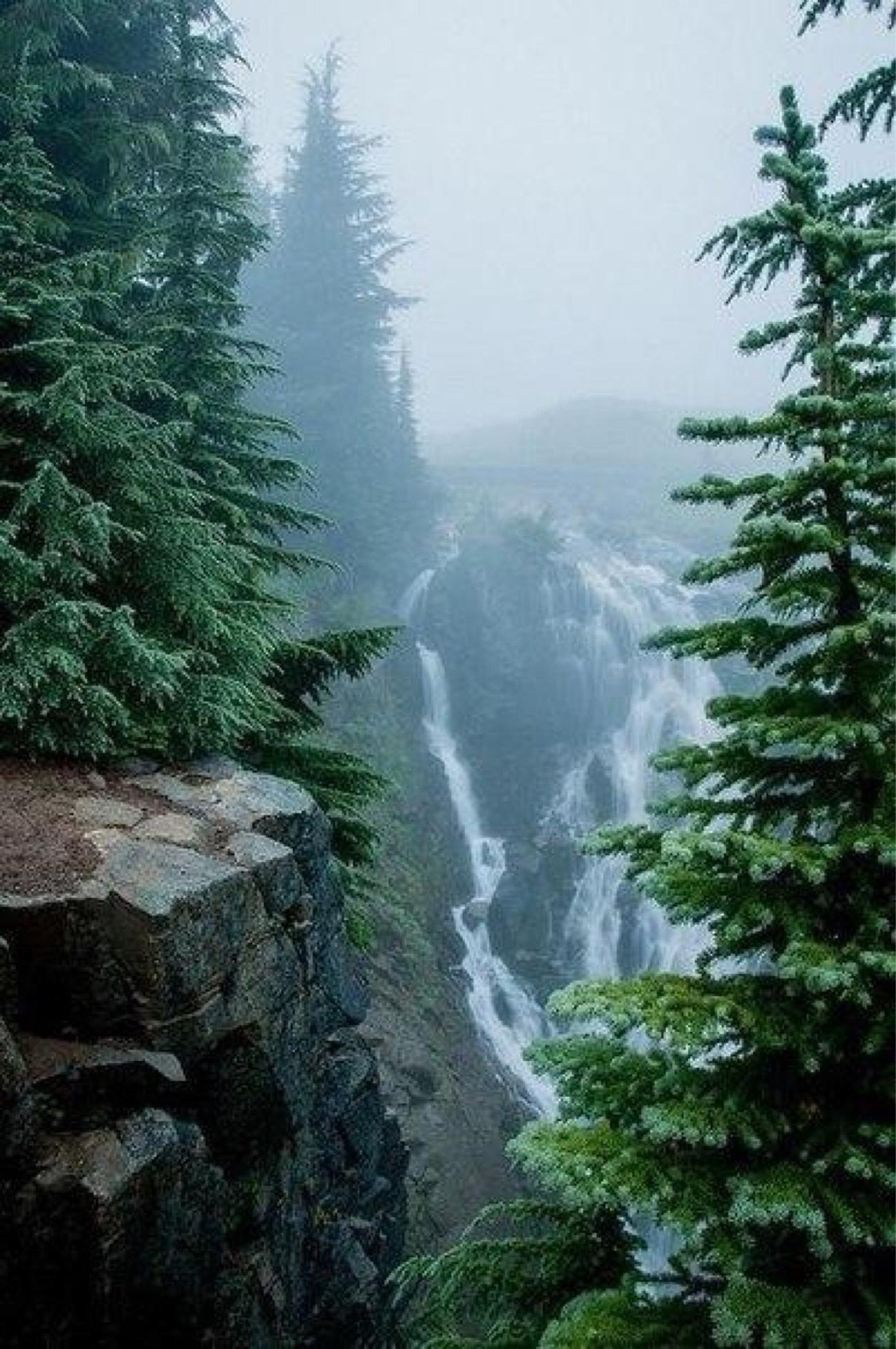 лес с водопадом