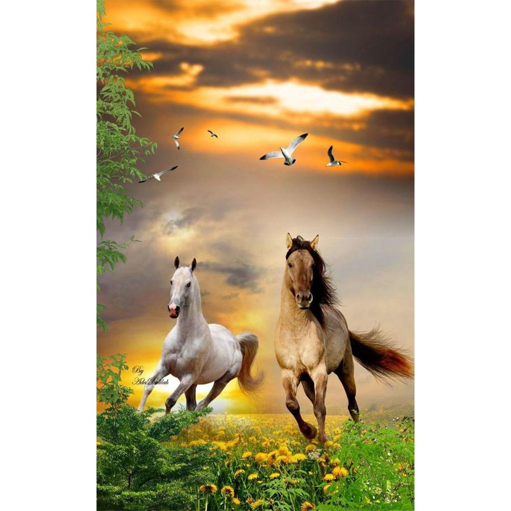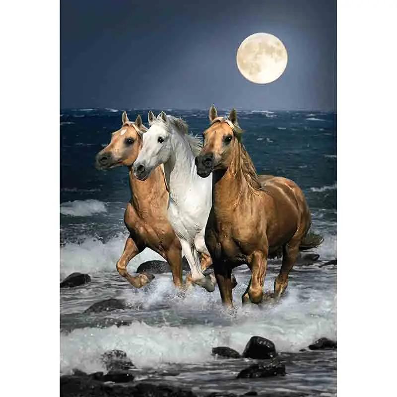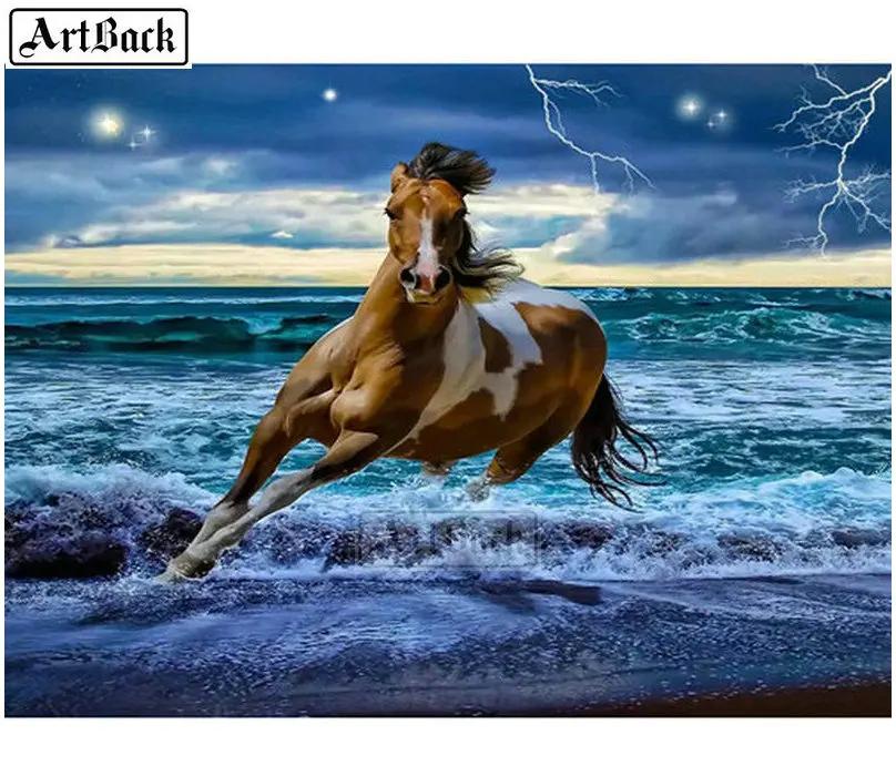 алмазная мозаика лошади на море