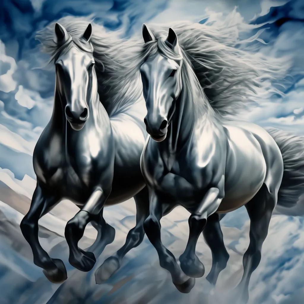 золотой серебристый конь картина