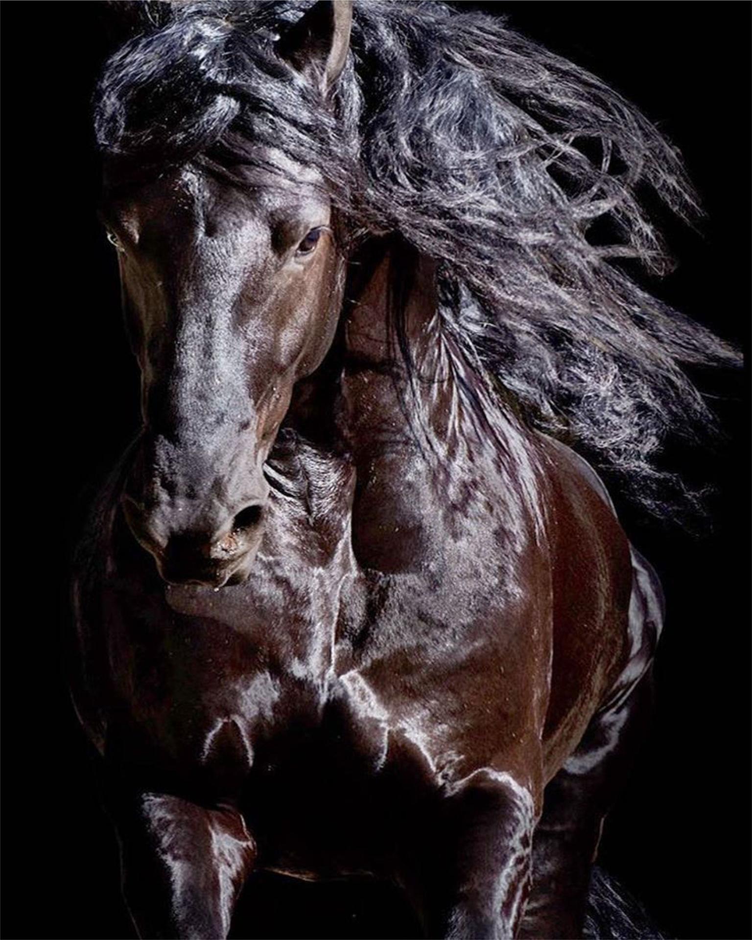 красивый черный конь