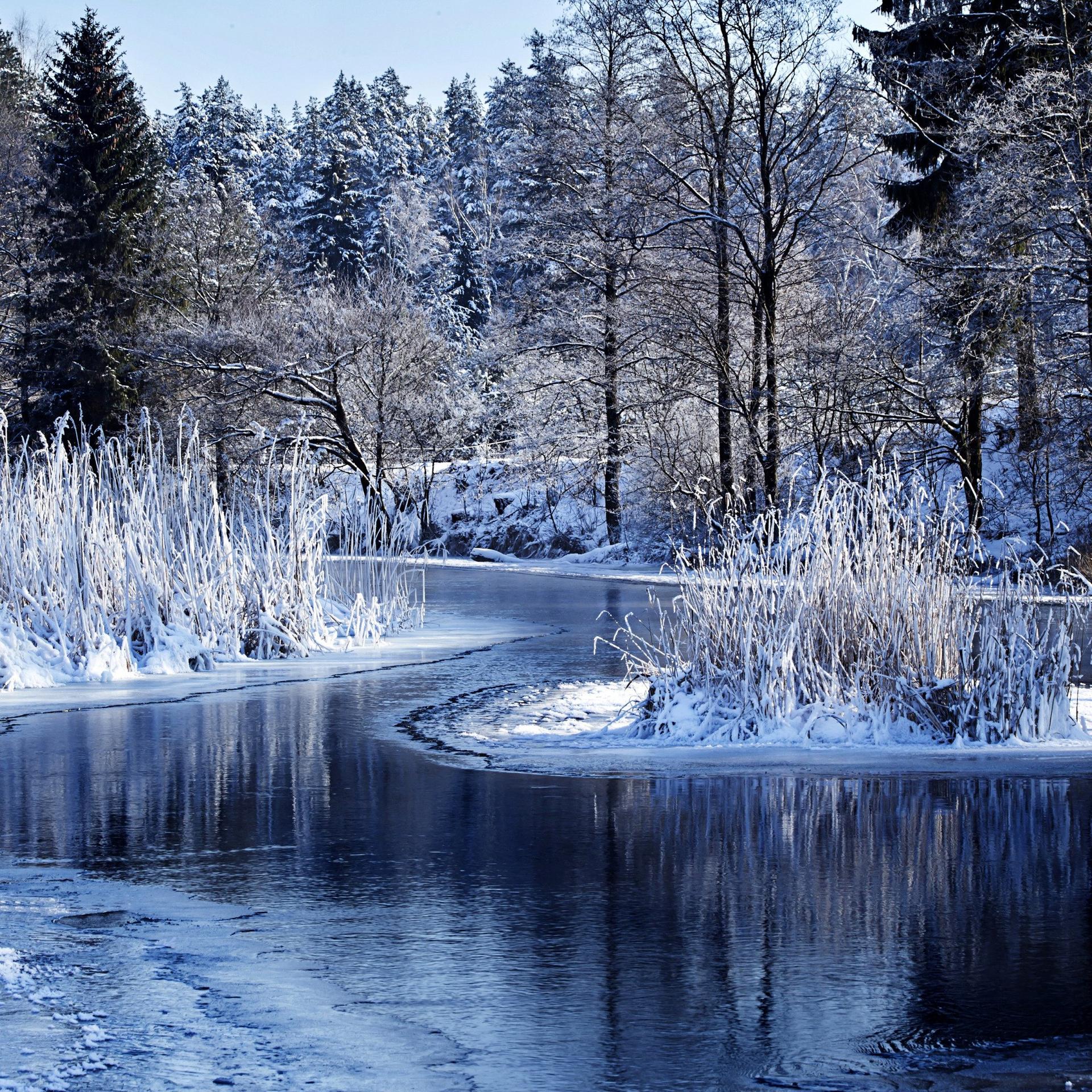 зима река