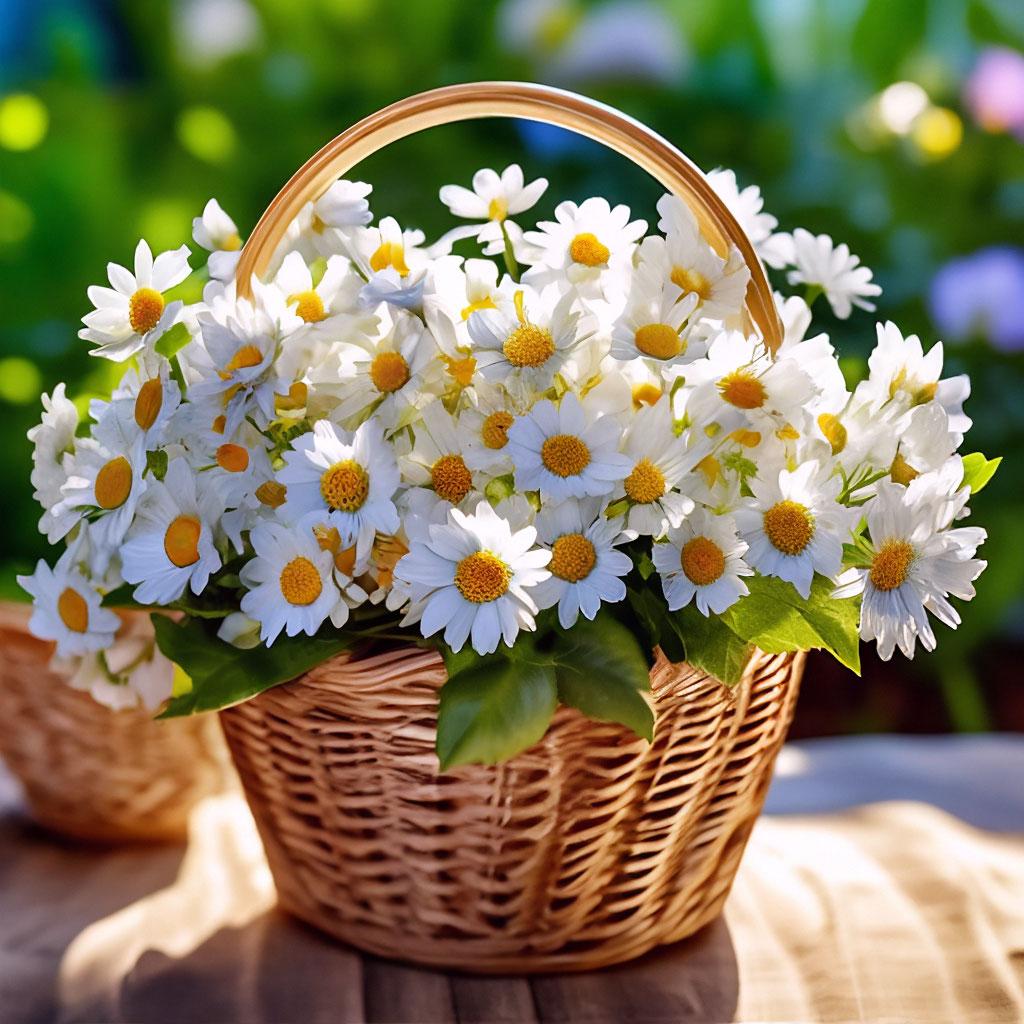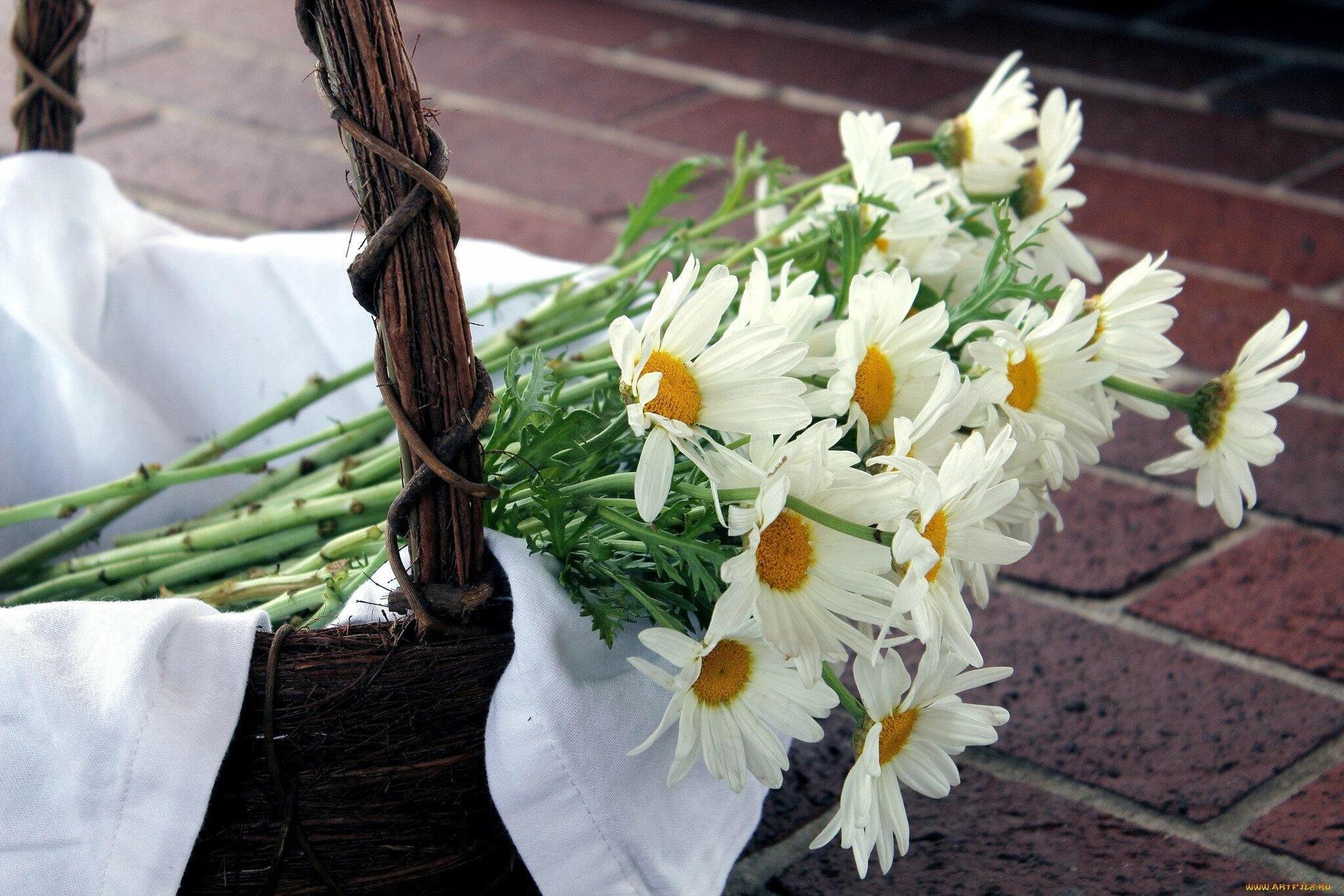 ромашки в корзине