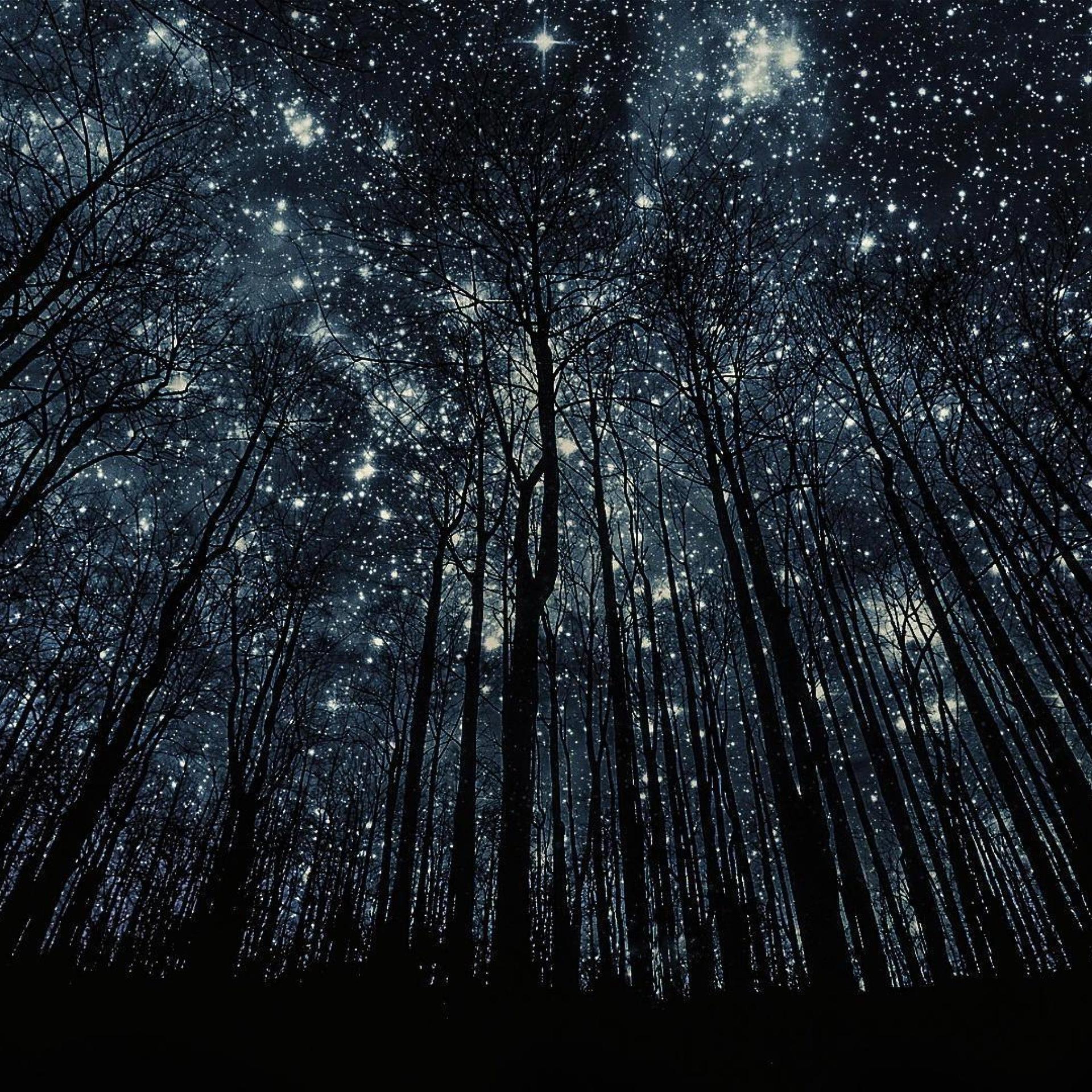 ночной лес со звездами