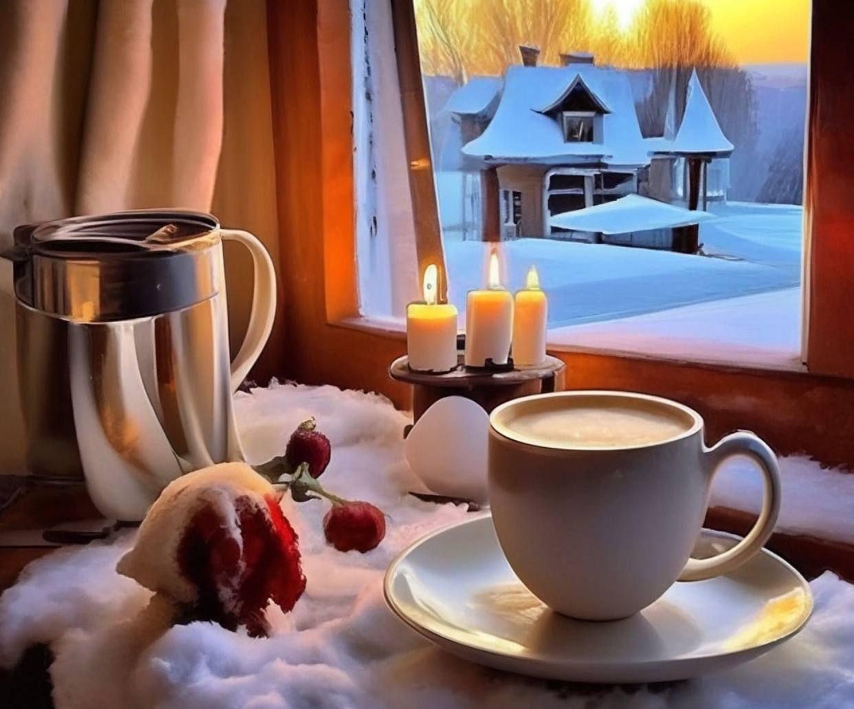 зимнее утро кофе