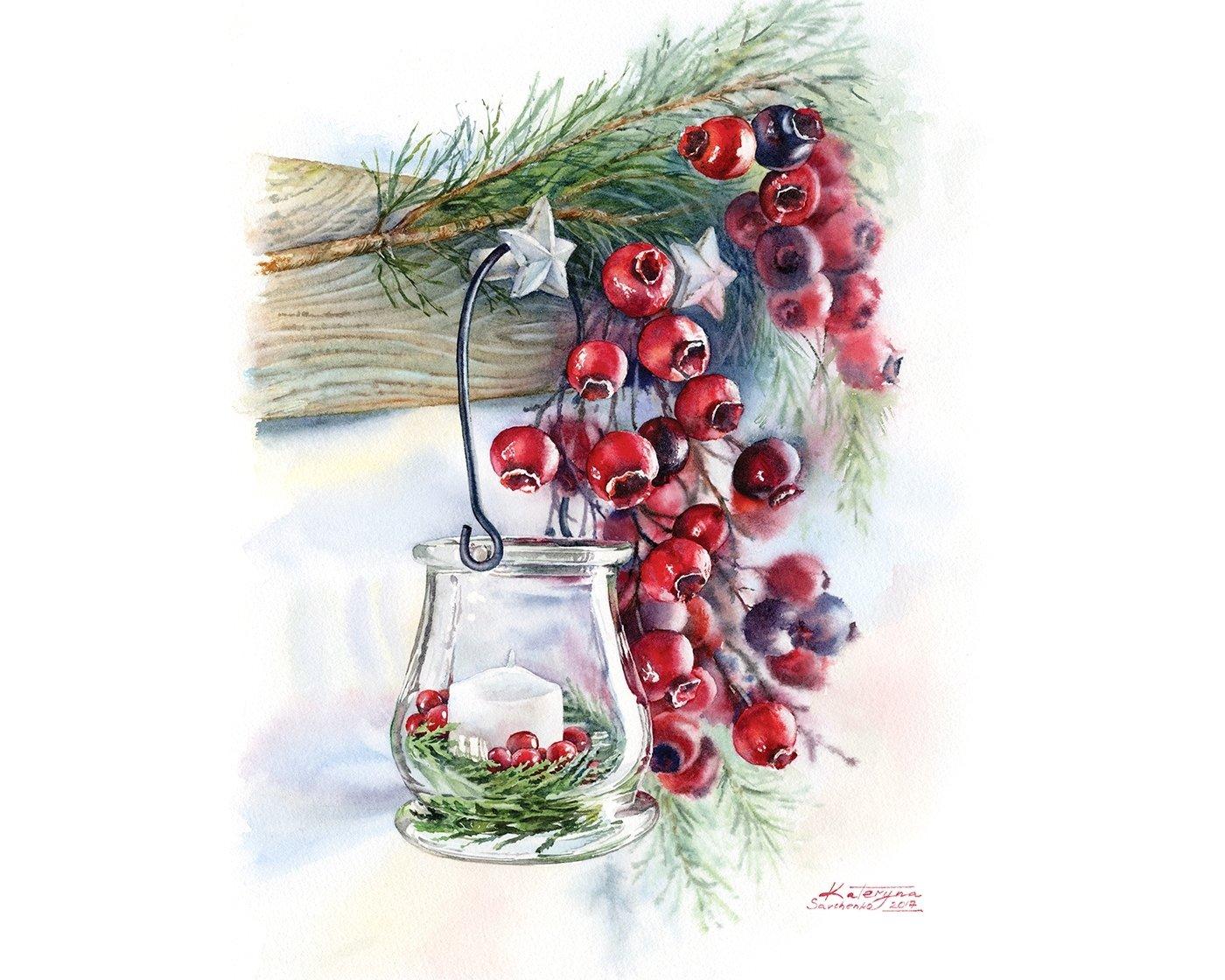новый год акварель