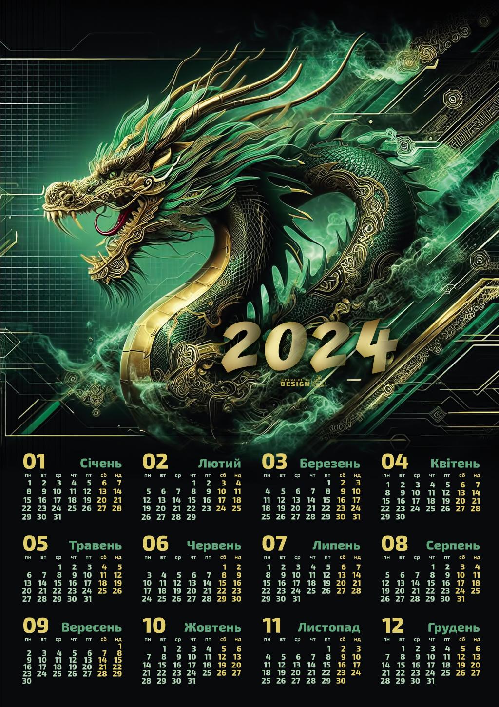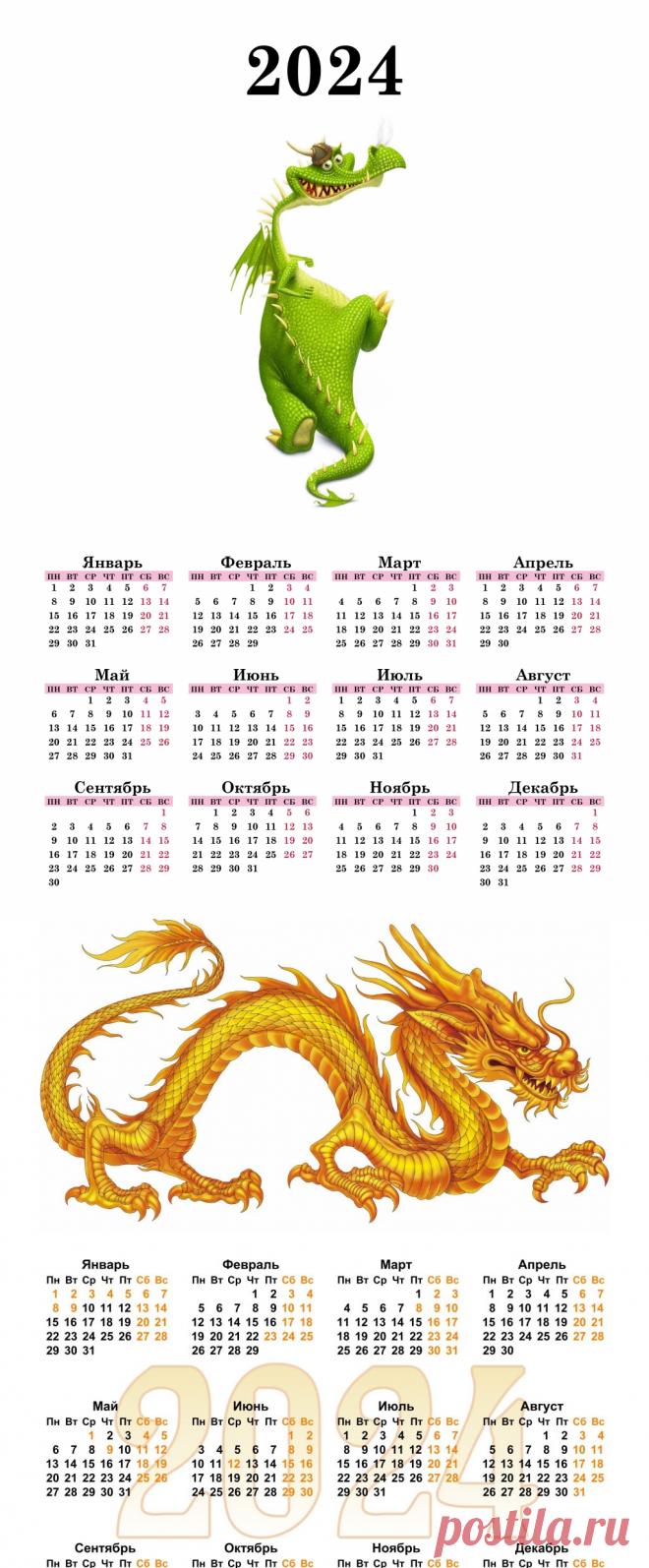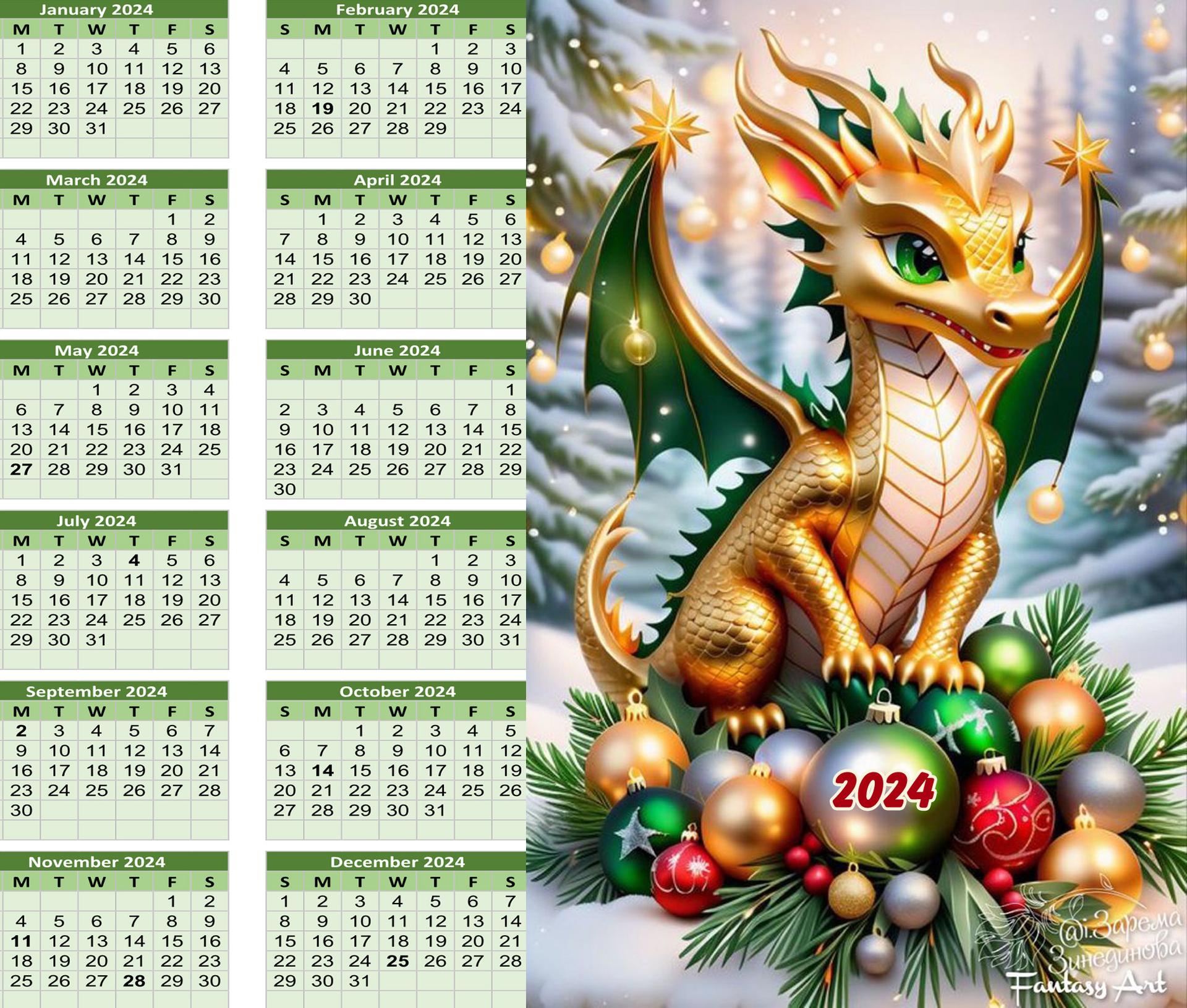 календарь 2024 дракон